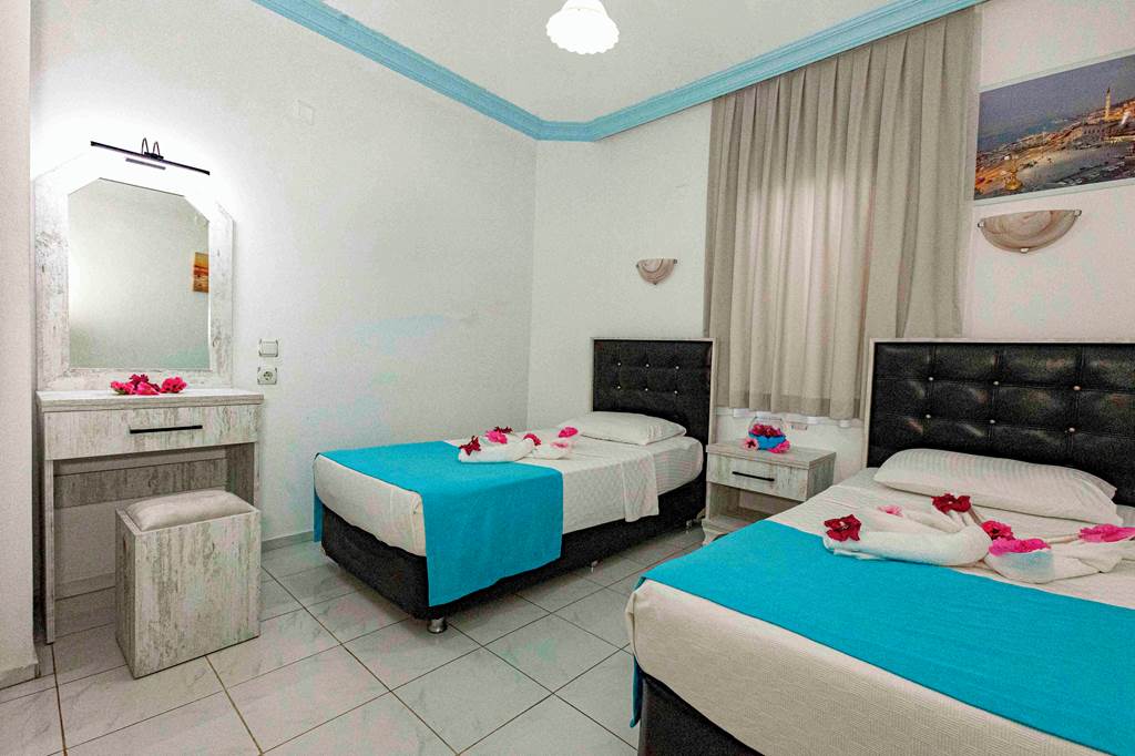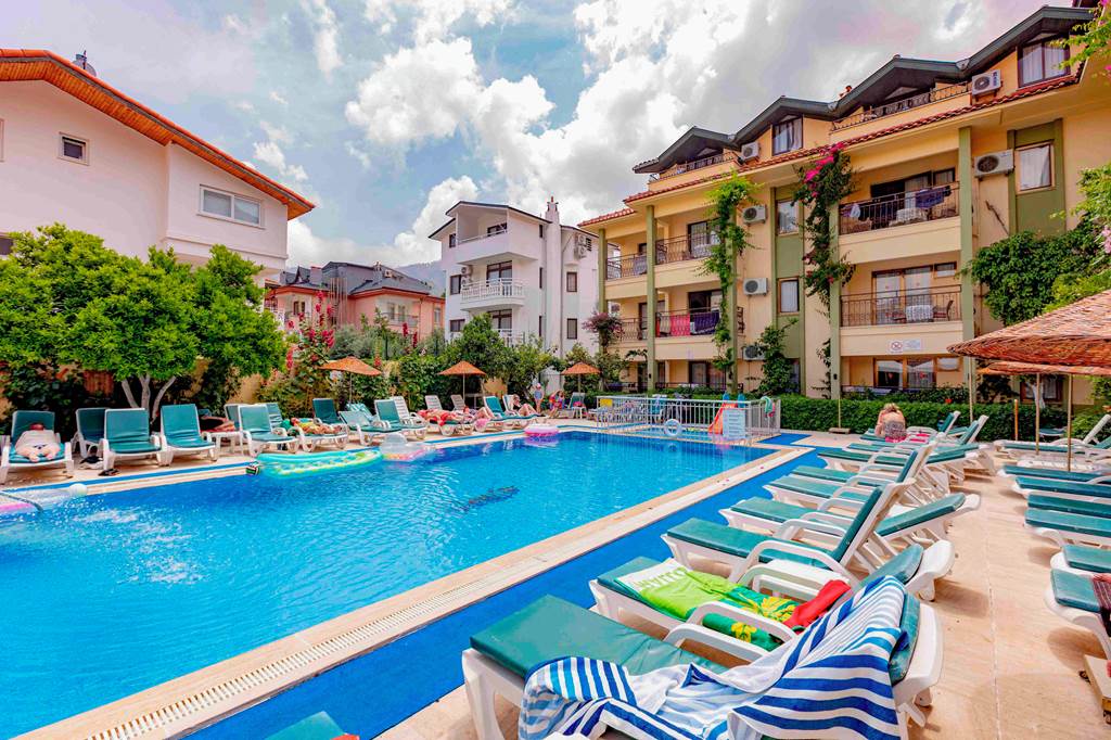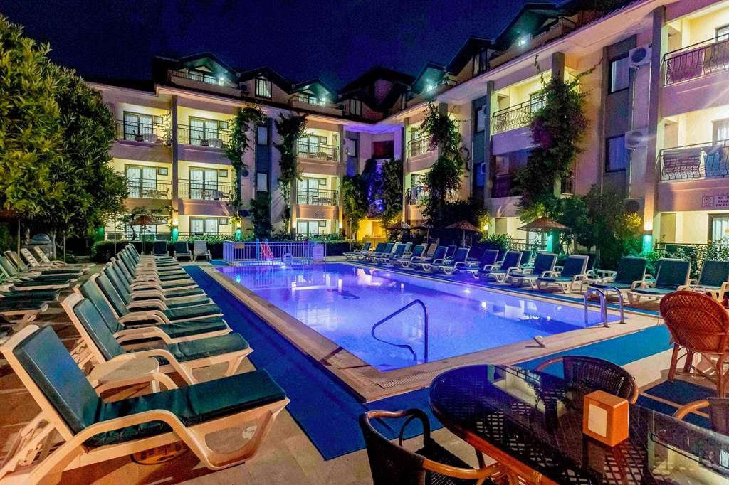 Set in a picturesque, relaxing and quiet location close to the centre of Icmeler and the beach. The friendly Oren Apartments have a cosy inviting pool area where days can be spent soaking up the sun with a refreshing drink from the pool bar. It?s a popular choice for families and couples looking for a basic, self-catering holiday with a friendly atmosphere.One Bedroom apartments sleep up to 4 adults and 1 child with twin or double bedroom plus a lounge area with sofa beds and have a bathroom with shower, hairdryer, air conditioning* (on request), kitchenette with fridge, cooking rings and balcony or terrace.