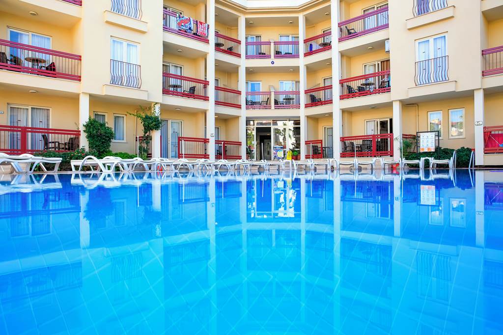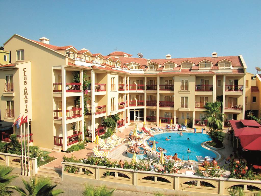 The Club Amaris Apartments are bright and spacious with an inviting pool area where you can spend days relaxing and soaking up the Turkish sun. The convenient location gives you the choice of great restaurants nearby plus time can be spent at the gorgeous sandy beach with the clear blue sea to cool you down. A short journey will take you to Marmaris resort centre for those looking for a lively atmosphere and a chance to explore the shops, bars and restaurants. This is a great value for money holiday with well-equipped apartments keeping you comfortable and happy for your stay.Studios sleep up to 2 adults and have bathroom containing a bath with shower attachment, air conditioning* (on request), hairdryer, double cooking rings, fridge, kettle and balcony or terrace. One Bedroom apartments sleeping you to 4 are also available.