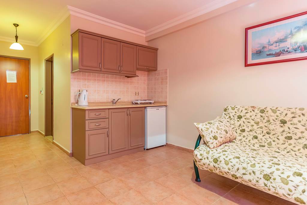 Studios sleep up to 2 adults and have bathroom containing a bath with shower attachment, air conditioning* (on request), hairdryer, double cooking rings, fridge, kettle and balcony or terrace. One Bedroom apartments sleeping you to 4 are also available.
