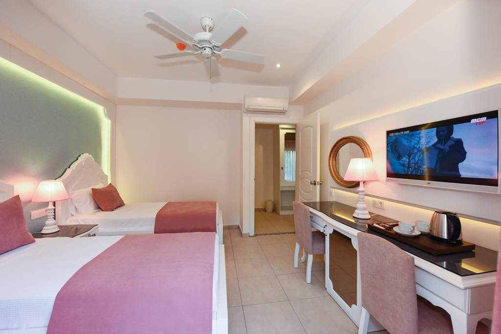 The Montebello Deluxe Hotel is a boutique-style property ideally located close to the centre of Olu Deniz with the stunning beachfront promenade also nearby. There?s a stylish pool area at the heart of the property, perfect for relaxing days soaking up the sun and a restaurant serving up tasty meals. By night, take a leisurely stroll into Olu Deniz and enjoy the dining options and nightlife on offer. Accommodation is chic and modern, making this a great choice for couples and friends looking for a laid-back holiday.Deluxe Double or Twin rooms sleep 2 adults and have bathroom containing a shower, air conditioning, hairdryer, flat screen television, safety deposit box*, coffee making facilities, fridge and balcony. Deluxe Family rooms sleeping up to 4 adults, Superior Attic Double or Twin rooms, Superior Suite rooms and Sole Use rooms are also available.