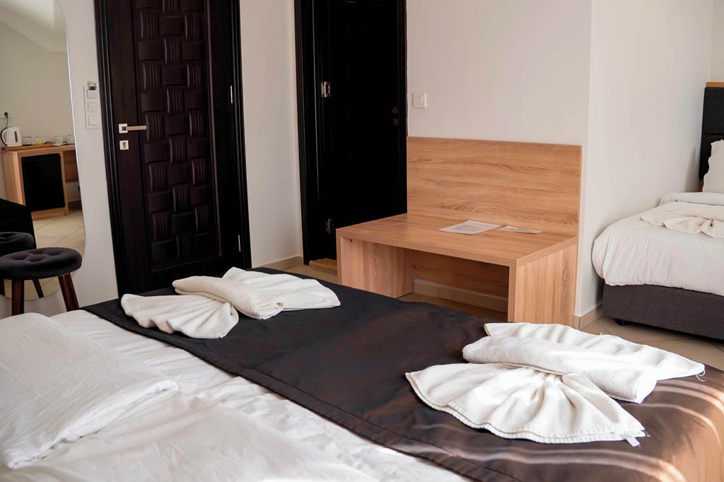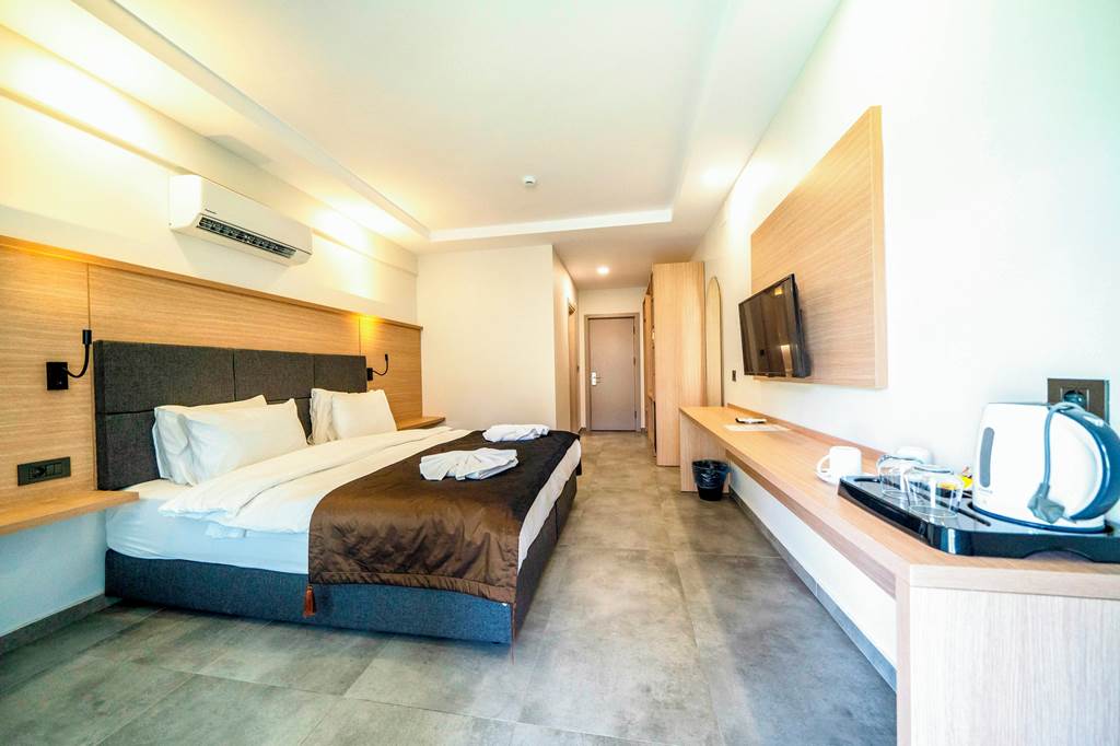 Standard Double or Twin rooms sleep 2 adults and have bathroom containing a shower, air conditioning, hairdryer, fridge, kettle, safety deposit box*, free Wi-Fi and balcony. Standard Triple rooms, Deluxe Double or Twin rooms, Family rooms sleeping up to 4 adults and Sole Use rooms are also available.