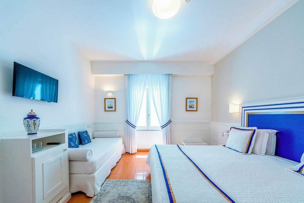 Just moments from the sun-kissed shores of Minori Beach, the enchanting Hotel Villa Romana invites you into a world of timeless Mediterranean elegance. Its sleek design is matched only by the vibrant beauty of the bougainvillea that drapes the poolside, where the air is perfumed with the scent of lemons. It?s the perfect oasis for leisurely lounging, complete with a poolside bar serving crisp, refreshing aperitifs. Step into serenity at the hotel?s one-of-a-kind spa, nestled within the vaulted rooms of an 18th-century palace built upon ancient Roman ruins. This extraordinary setting offers a deeply restorative experience, where history, tranquillity, and luxury come together for unforgettable relaxation.Classic rooms sleep up to 2 adults and have a bathroom containing a bath or shower, air conditioning, hairdryer, safety deposit box, television and mini bar*. Room upgrade options are also available.