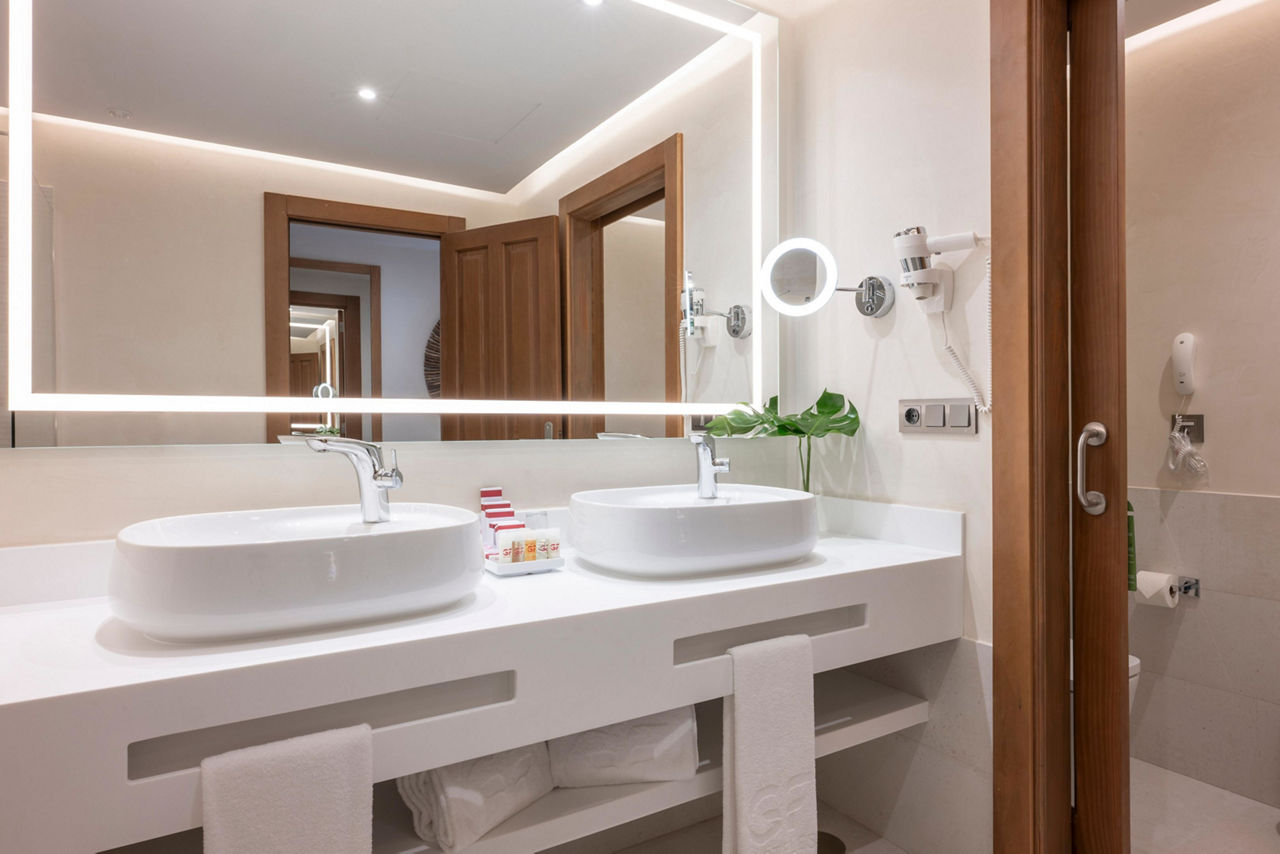 Double or Twin rooms sleep 3 adults or 2 adults and 1 child and have bathroom, air conditioning, satellite TV, free Wi-Fi and balcony or terrace. Double or Twin rooms with Side Sea View, Double or Twin rooms for Sole Use, Senior suites, Royal suites and Imperial suites are also available. The minimum occupancy in the Senior suites is 2 adults and the maximum occupancy is 3 adults and 1 child and 1 cot or 2 adults and 2 children and 1 cot.