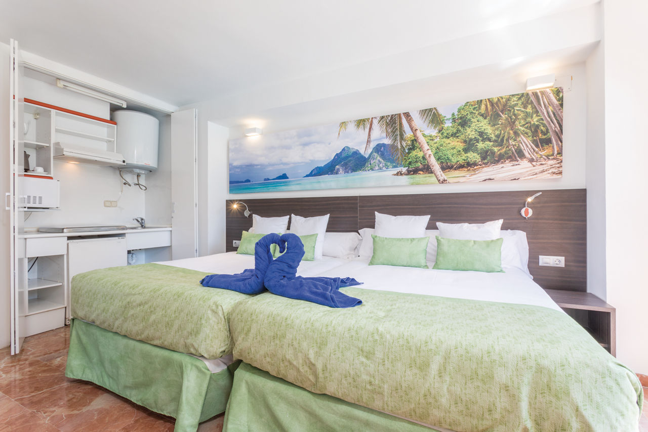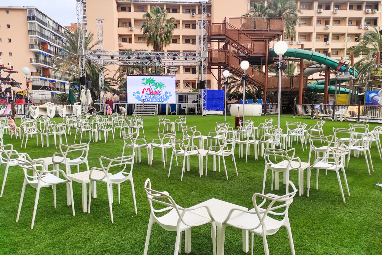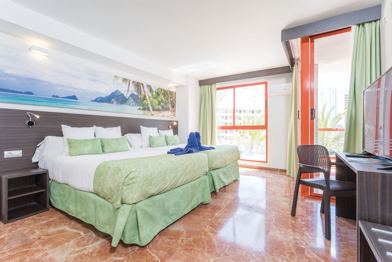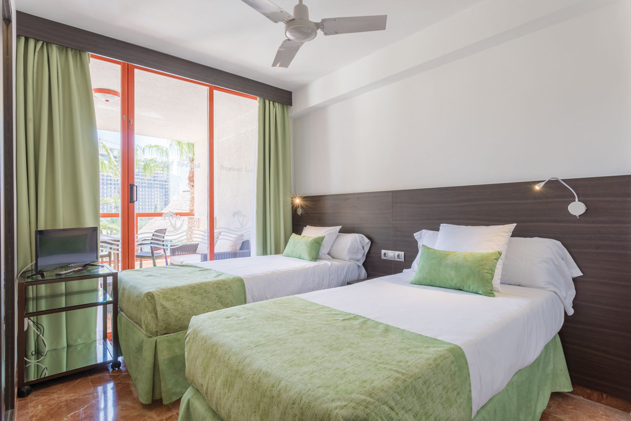 Fun times await every day at Magic Tropical Splash in Benidorm! This vibrant hotel has a fantastic pool scene with the on-site Pirates Adventure aqua park and Black Pearl splash park for days of seafaring and splashing in the water! The game zone is amazing for all ages too, with games consoles and arcade games galore! The fun continues at the indoor play area and playground ? there is also an exciting entertainment programme to enjoy. Want to take it easy? Head for the body nourishing on-site spa. The spacious rooms, fantastic facilities and friendly service make this a great choice for an action-packed family holiday.One Bedroom apartments sleep up to 4 adults and have a bathroom, air conditioning, satellite TV, kitchenette with cooking rings, fridge and microwave, and balcony or terrace. Two Bedroom apartments sleeping up to 5, 6 or 8 are also available.