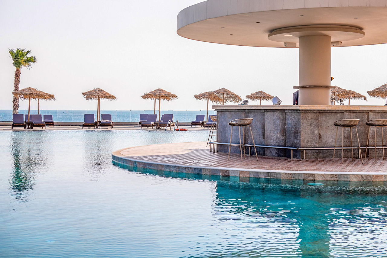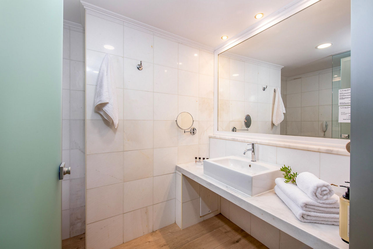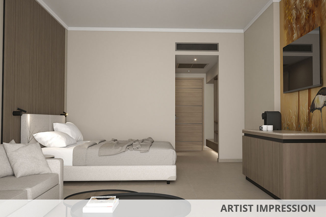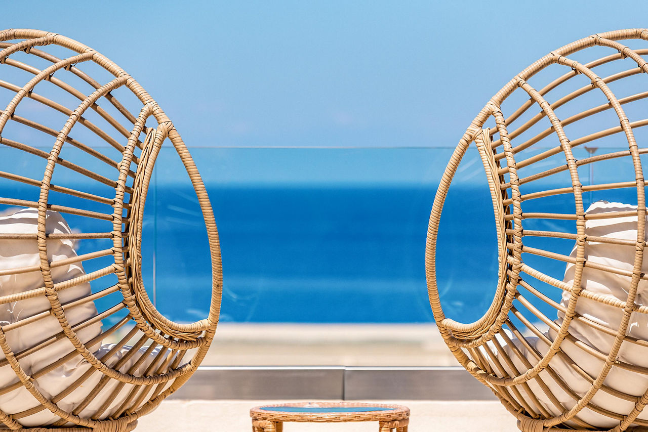 Double rooms with Garden View sleep up to 3 adults and have a bathroom containing a whirlpool bath, hairdryer, bathrobe and slippers, air conditioning (01 May-31 Oct), flat screen television, tea and coffee making facilities, fridge and balcony or terrace. Superior Double rooms with Sea View, Junior suites with Sea View sleeping up to 3 adults and 1 child, Villa Junior suite with Sea View and Private Pool sleeping up to 3 adults and 1 child, One Bedroom suites with Sea View sleeping up to 3 adults and 1 child, Royal Villa with Sea View and Private Pool sleeping up to 3 adults and 1 child and Single rooms with Sea View are also available.