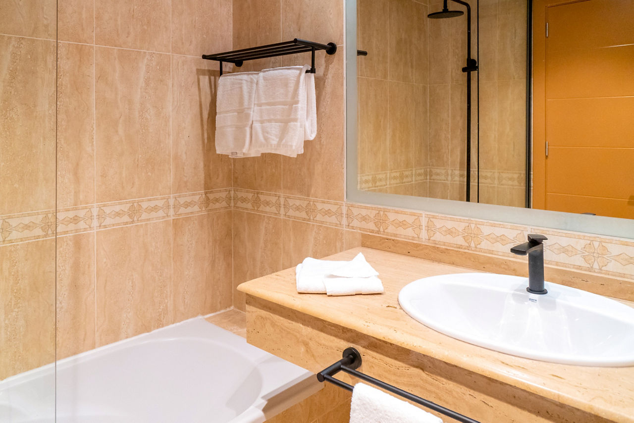 Double rooms sleep up to 3 adults and have bathroom containing a bath with shower attachment, hairdryer, television, safety deposit box* and balcony or terrace. Double rooms with Pool View and Double rooms for Sole use are also available.