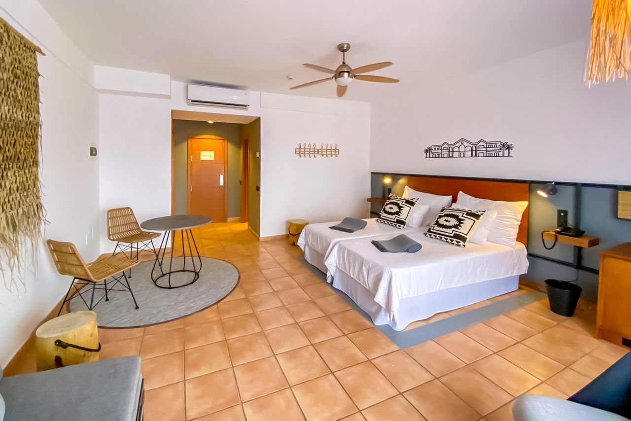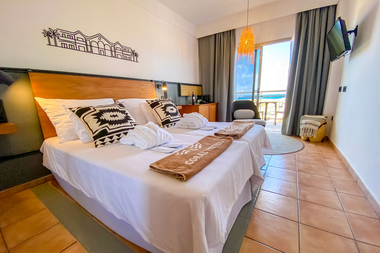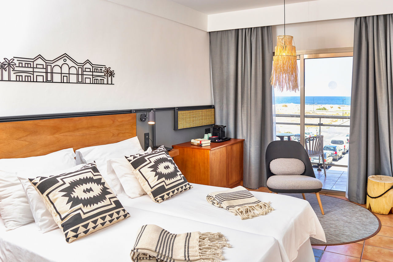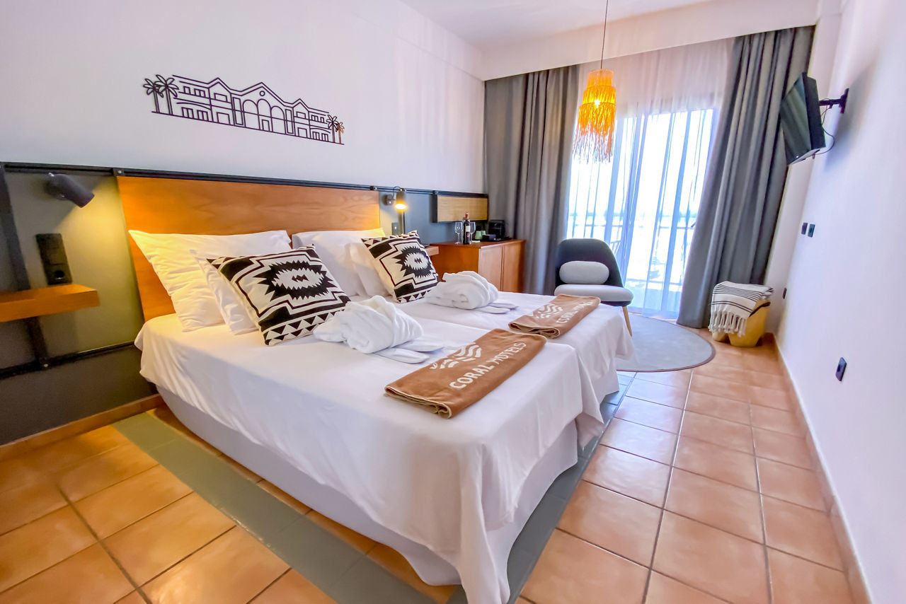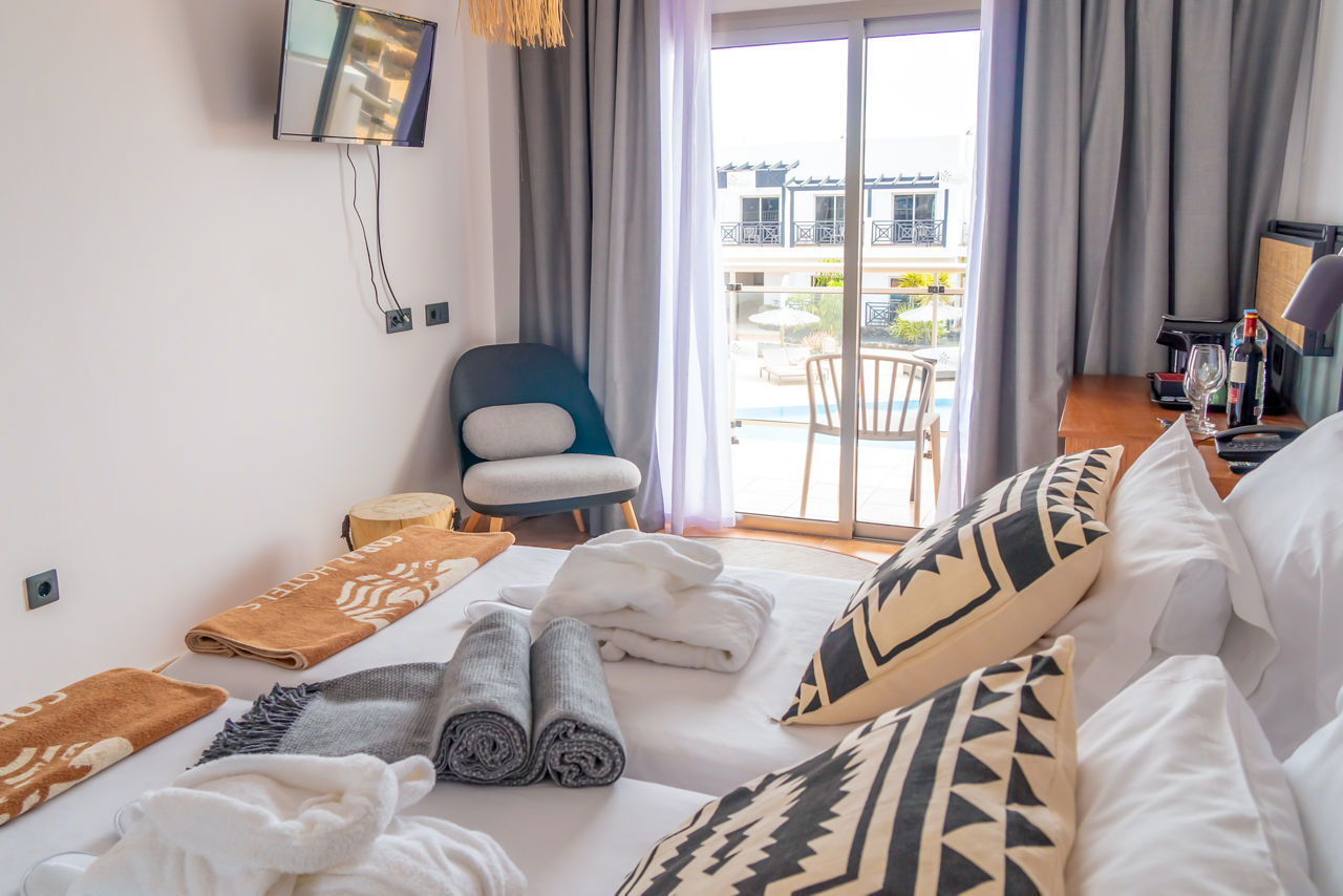 Expect a complex full with bright, modern d?cor to welcome the light of the outdoors in. Trace your way from the outdoor pool to the bronzed beach, mere moments away. Notice the updated minimalism as you relax in your ultra-comfortable room or suite. You'll have the ease of Bed and Breakfast or Half Board during your stay. While quaint El Cotillo and local surf schools will all beckon, be sure to enjoy the hotel's sun loungers and handy snack bar too.Double rooms sleep up to 3 adults and have bathroom containing a bath with shower attachment, hairdryer, television, safety deposit box* and balcony or terrace. Double rooms with Pool View and Double rooms for Sole use are also available.