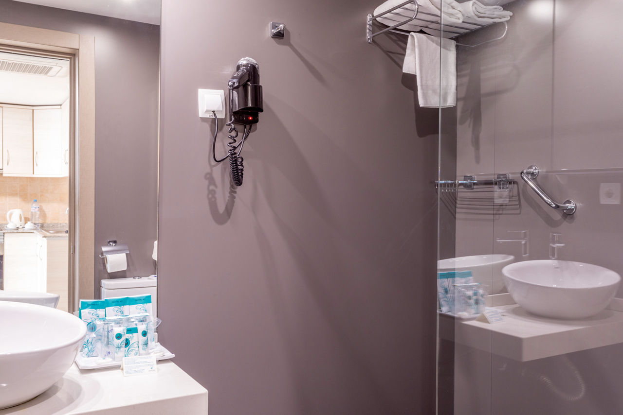 Junior suites sleep up to 3 adults and have a bathroom with bath, hairdryer, kitchenette, air conditioning*, flat screen TV, safety deposit box*and balcony or terrace. Junior suites for Sole Use are also available.
