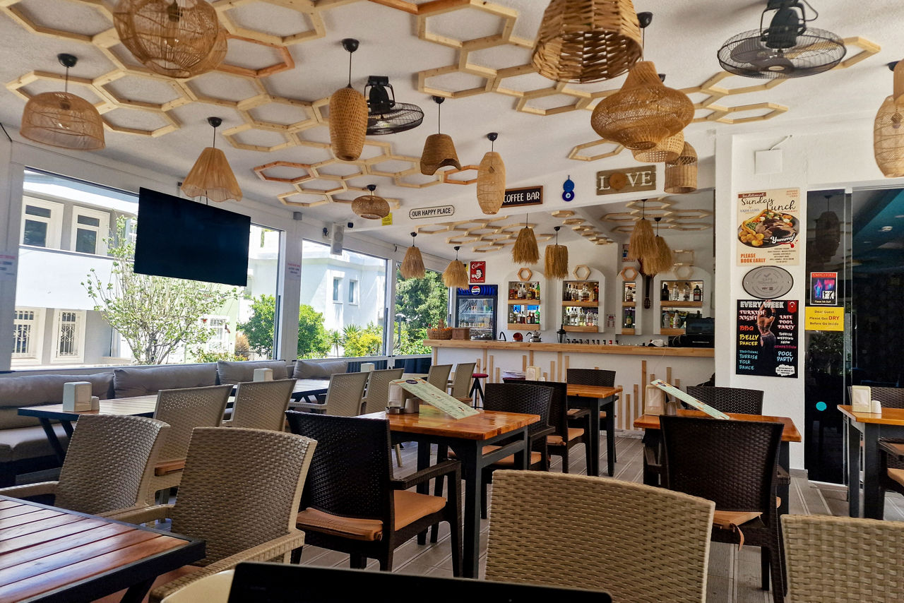 800m from the beach. In Icmeler resort centre.Complete Booking