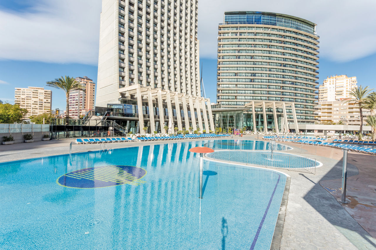 Towering over Benidorm, the Gran Hotel Bali is the tallest hotel in Europe and boasts incredible views of the bay from the 43th floor viewing platform. Popular with both Spanish and British couples and families, guests come back year after year for the well appointed rooms, great service and range of facilities on offer. Ideal for lazy days on the nearby Poniente beach, this hotel is a great choice for a relaxing stay in a vibrant resort.Double and Twin rooms sleep up to 3 adults and 1 child and have air-conditioning, flat screen satellite TV, hairdryer, bathroom and balcony. Single rooms are also available at a supplement.