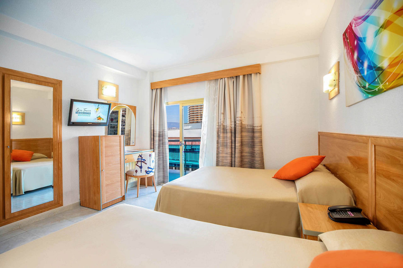 Nestled in a peaceful area at the end of the Levante beach, yet surrounded by the lively charm of nearby shops, bars, and restaurants, Hotel Servigroup Nereo offers comfortable accommodation at a good standard throughout, making it a popular choice all year round. The hotel features a delightful terrace at the forefront, offering a quiet escape to unwind by the inviting pool. Stay at Hotel Servigroup Nereo, where tranquillity and comfort intertwine, creating a year-round retreat.Twin rooms sleep up to 3 adults and have A bathroom, hairdryer , air conditioning or heating, flat screen satellite TV, fridge, and balcony or terrace. Twin rooms for Sole Use are also available.