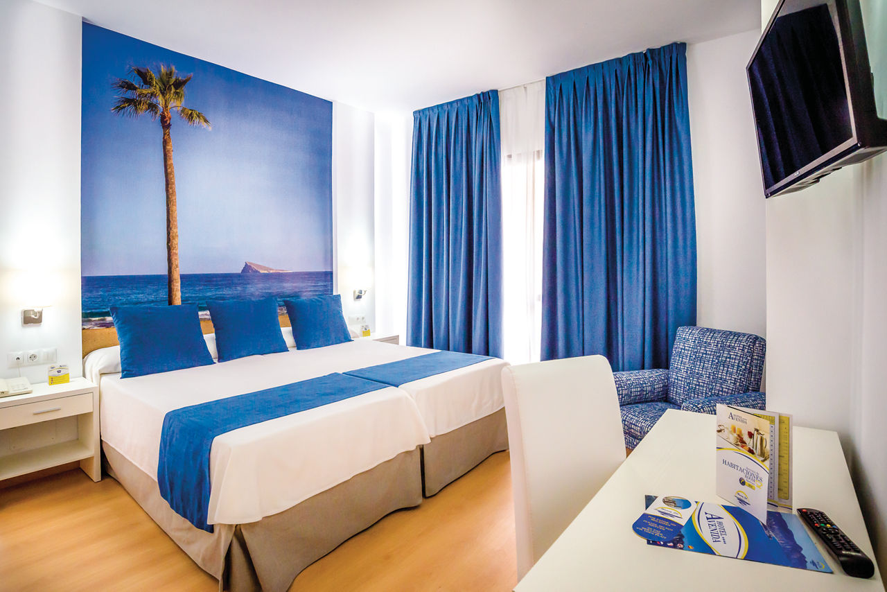 In a great location on a bustling pedestrianised street, the Avenida Hotel is an ideal choice for anyone looking to enjoy the beautiful Old Town of Benidorm. The award winning Levante Beach is just a stones throw away when you need to recharge the batteries, and there is also a rooftop pool to enjoy. Rooms here are modern and bright, and offer a comfortable retreat to relax and unwind.Double and Twin rooms sleep up to 3 adults and have a bathroom containing bath or shower, hairdryer, air conditioning (01 Jun- 30 Sep) and flat screen TV. Double and Twin rooms for Sole Use and Single rooms are also available.