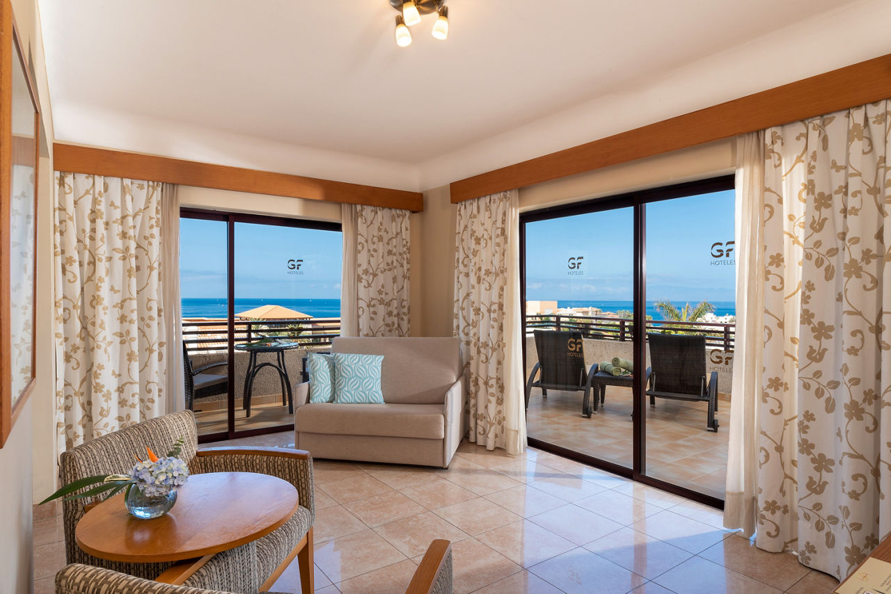 Get ready to soak up the sunshine at GF Fanabe. With a great range of facilities on offer, like the adults-only rooftop terrace, fun-packed children?s club and outdoor play area. And the pi?ce de resistance? The five outdoor pools! From Self Catering to All Inclusive, the hotel?s range of board bases means everyone is well catered for. You?ll find three brilliant bars as well as a buffet-style restaurant. When you fancy spending a day on the sand, the nearest beach is just a short amble away from the hotel. Costa Adeje?s bars and restaurants are within walking distance too.Double or Twin rooms sleep up to 3 adults or 2 adults and 1 child and have bathroom containing a bath with shower attachment, air conditioning, hairdryer, flat screen television and balcony or terrace. Room upgrade options and Sole Use rooms are also available.