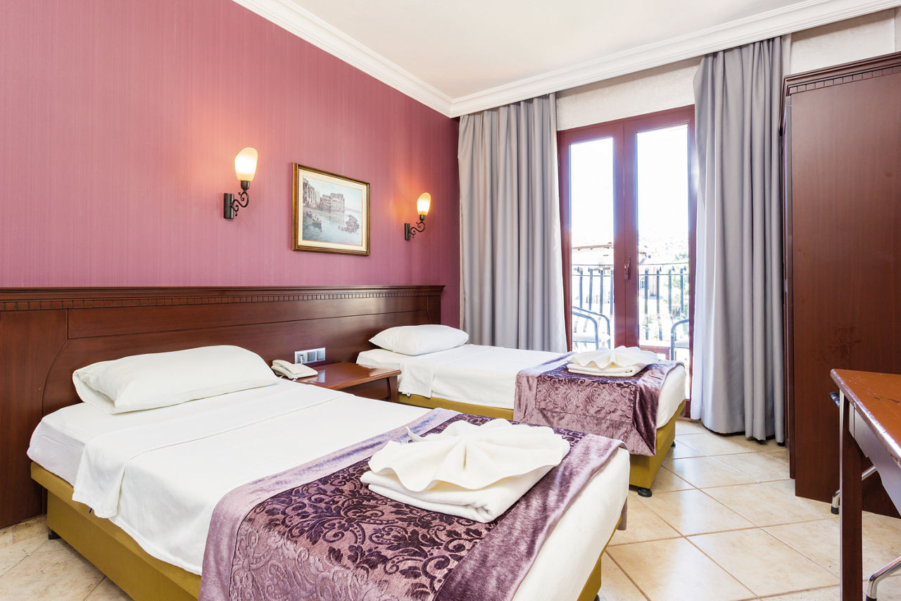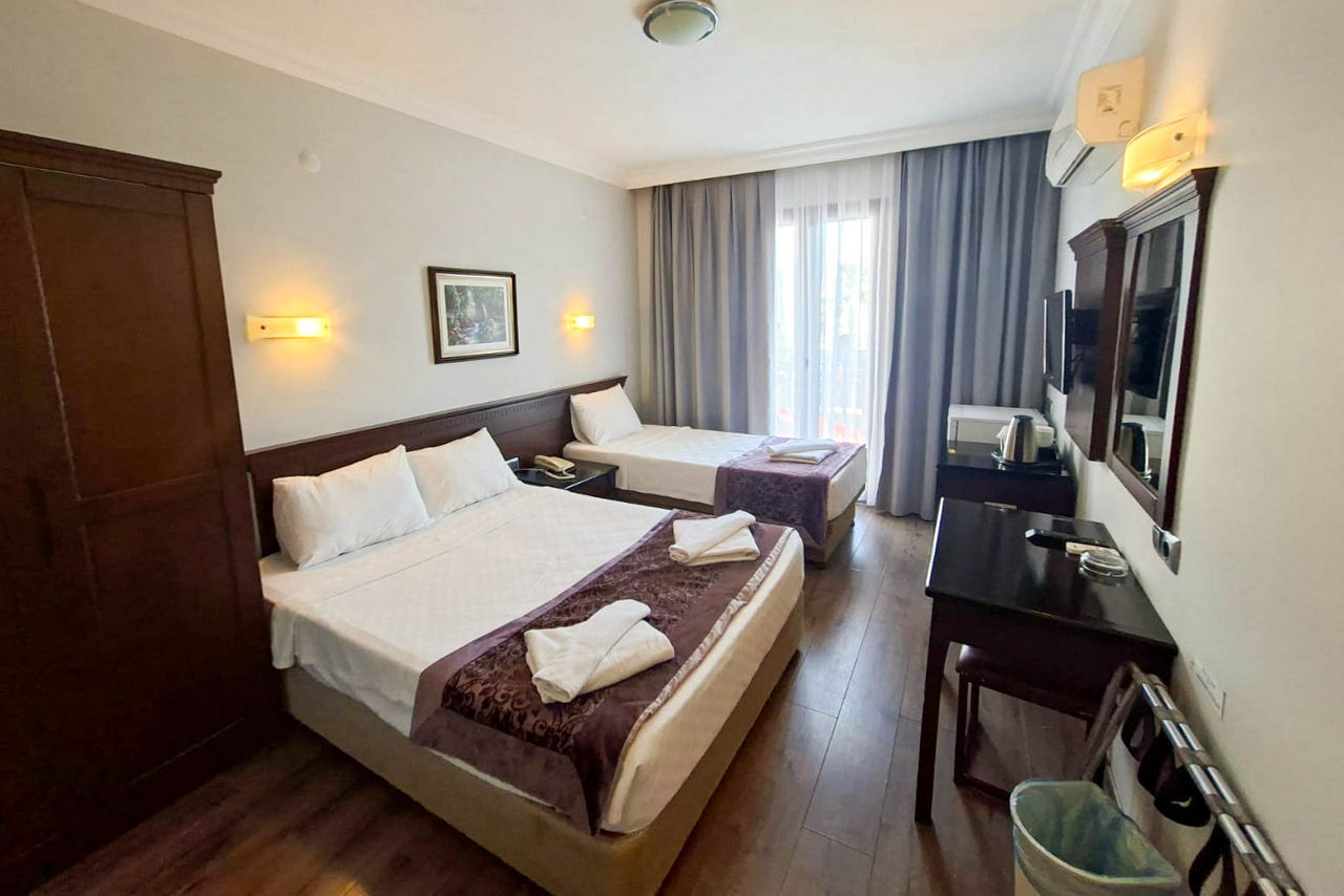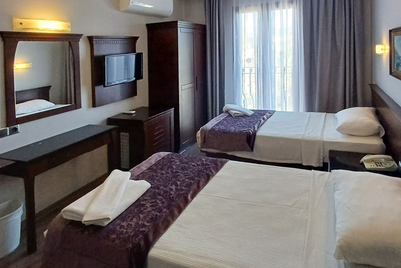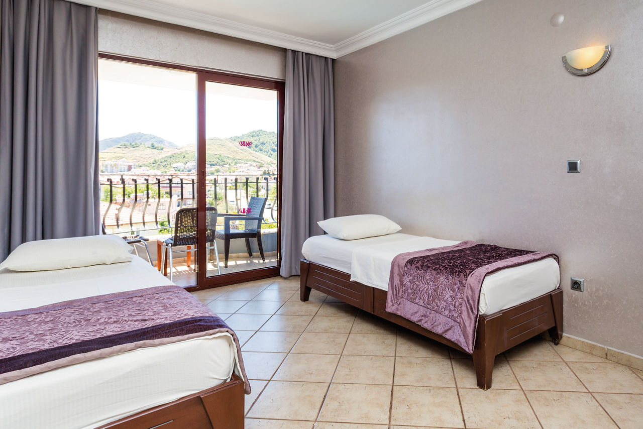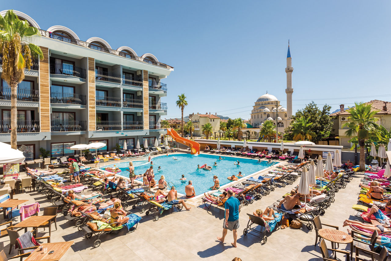 Club Viva offers guests a great location with a friendly atmosphere and bars and restaurants close to hand. If you want to get out and about, Marmaris resort centre is just a 10 minute bus journey away. This hotel is perfect for families, friends and all facilities are on one level giving easy access for everyone, including a great pool with waterslide. Inside the hotel, rooms are comfortable and spacious and there?s even Family rooms available!Standard Double and Twin rooms sleep up to 3 adults or 2 adults and 1 child and have a bathroom with bath with shower, hairdryer, air conditioning, mini-fridge, satellite TV and balcony or terrace. Family rooms sleeping up to 4 adults are also available and have a double bed in a separate room, plus two single beds.
