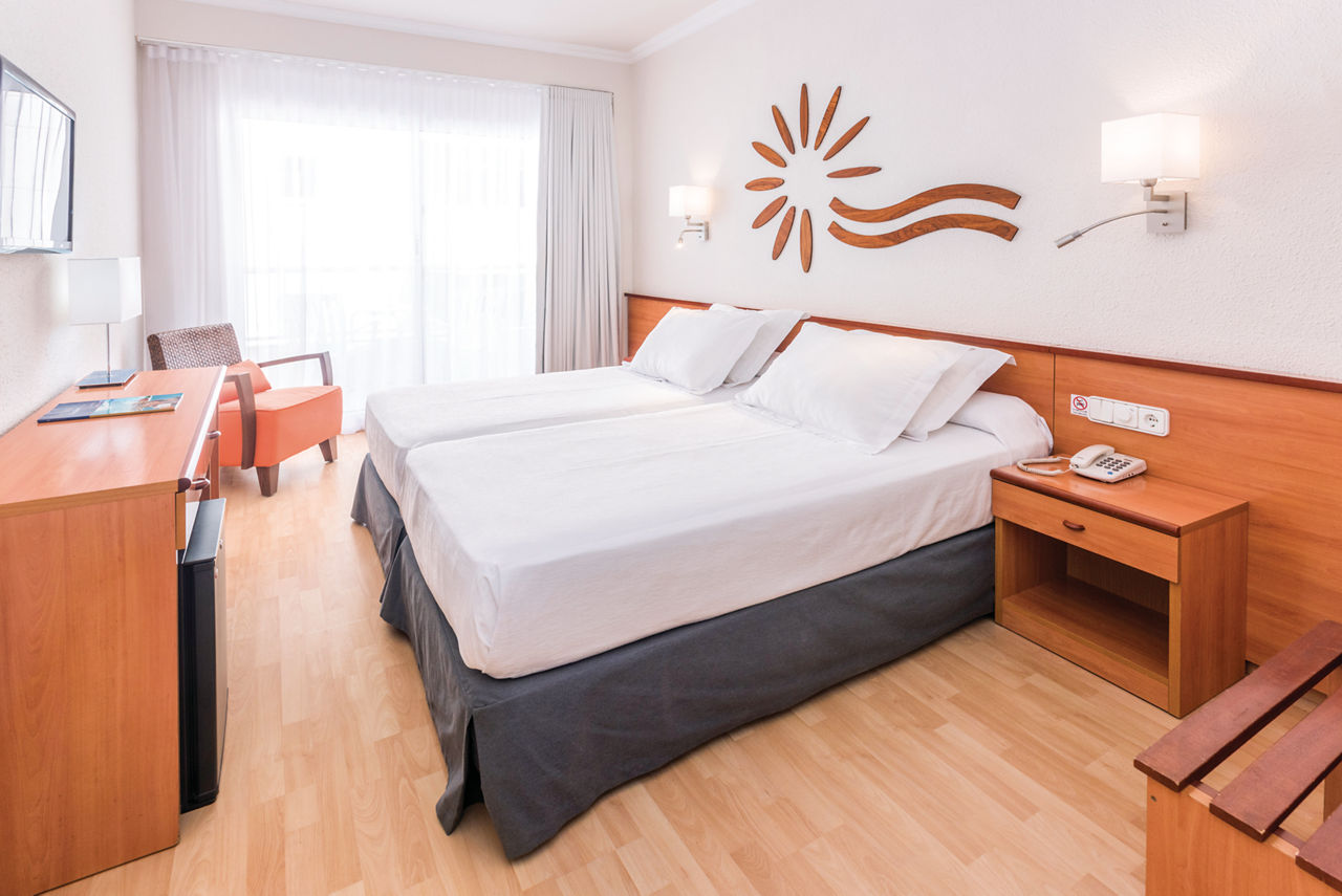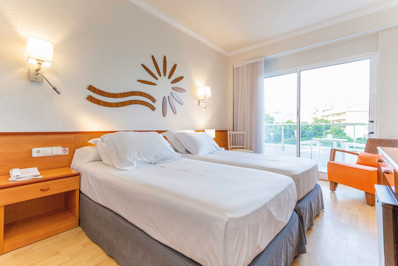 Twin rooms sleep up to 3 adults and have air-conditioning (9th June - 14th September dates may vary) satellite TV, bathroom, hairdryer and balcony or terrace. Single rooms (no balcony) are also available at a supplement.