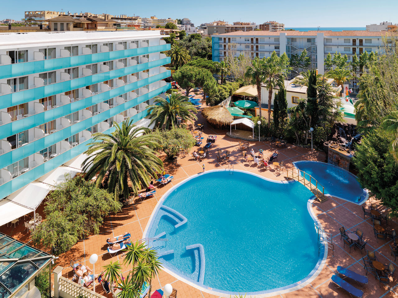 Situated close to the beach you can find the contemporary H10 Delfin Hotel. This stylish hotel offers it?s guests a chilled atmosphere with a choice of outdoor pools to relax by, including a chic rooftop number. There?s also a buffet restaurant and a selection of bars to enjoy. Plus, the well-equipped rooms will ensure a good night?s sleep, you even have the option of upgrading to a pool view! All of this is housed in whitewashed d?cor with Mediterranean touches and is within touching distance of the resort centre, making this a great choice when visiting Salou.Twin rooms sleep up to 3 adults and have a full bathroom, hairdryer, air conditioning, satellite TV and a balcony or terrace. Twin rooms with Pool View and Single rooms are also available.
