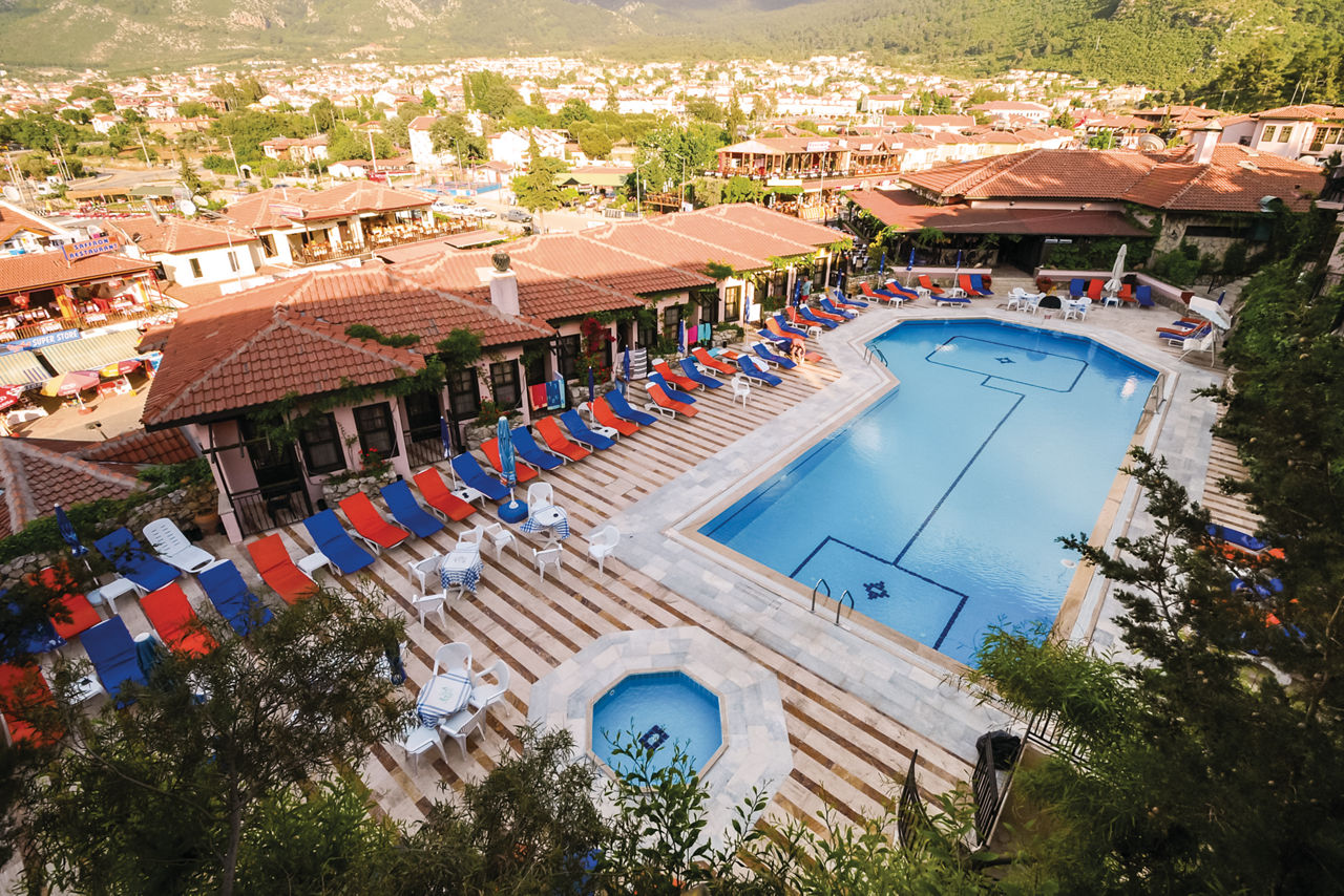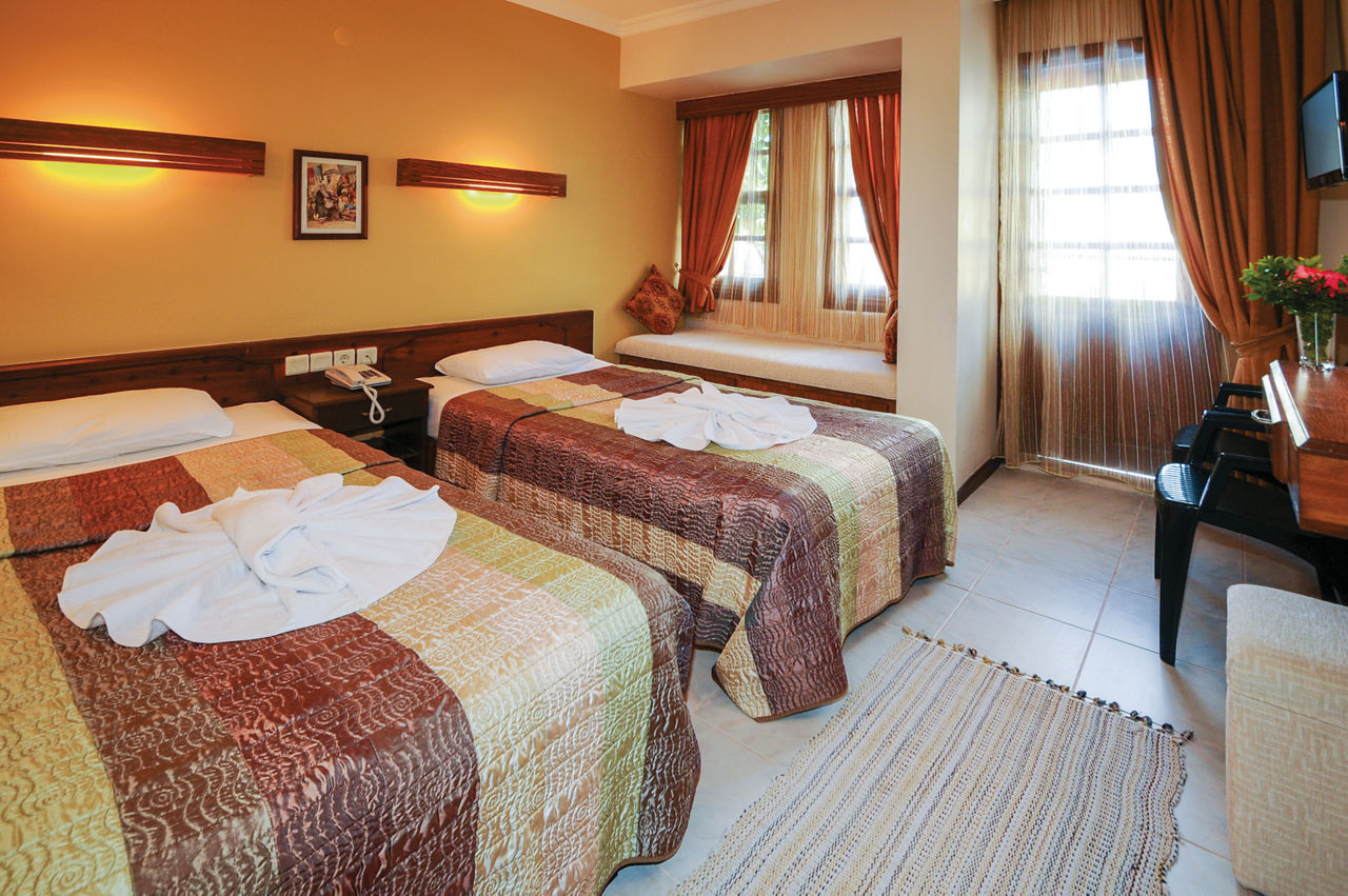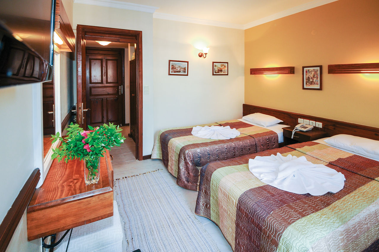 The Hisar Holiday Club is in a great location in the centre of popular Hisaronu, a resort which is located on a high plateau and surrounded by beautiful pine-clad mountainous backdrops. There?s an outdoor pool with plenty of sunbeds for ideal for days spent relaxing in the sun. You?ll be spoilt for choice when it comes to bars and restaurants too, with a great selection just on your doorstep. Rooms are bright, comfortable and offer all you need for a great value holiday.Standard Double or Twin rooms sleep up to 2 adults and 1 child and have bathroom containing a shower, air conditioning*, hairdryer, flat screen television, safety deposit box* and balcony or terrace. Standard Double and Twin rooms for Sole Use and Family rooms are also available.