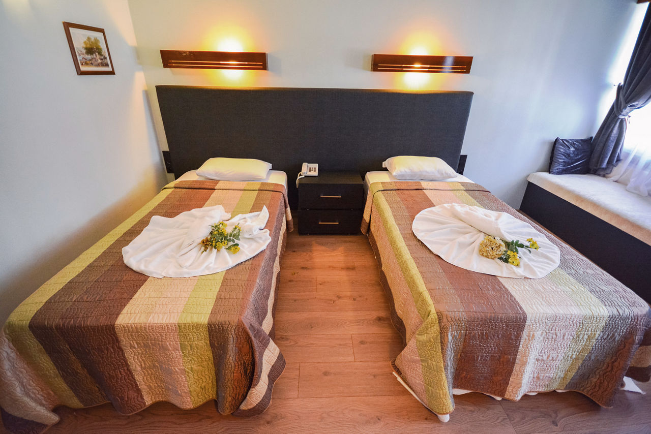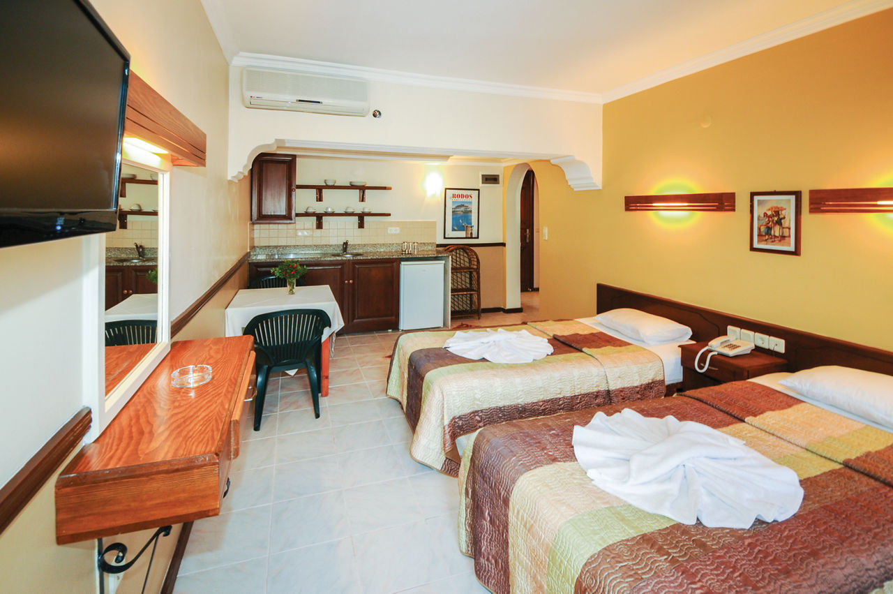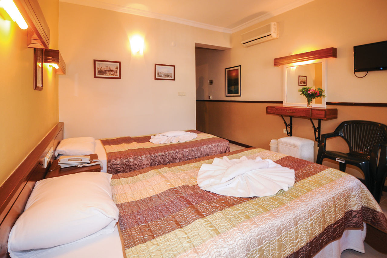 The Hisar Holiday Club is in a great location in the centre of popular Hisaronu, a resort which is located on a high plateau and surrounded by beautiful pine-clad mountainous backdrops. There?s an outdoor pool with plenty of sunbeds for ideal for days spent relaxing in the sun. You?ll be spoilt for choice when it comes to bars and restaurants too, with a great selection just on your doorstep. Rooms are bright, comfortable and offer all you need for a great value holiday.Standard Double or Twin rooms sleep up to 2 adults and 1 child and have bathroom containing a shower, air conditioning*, hairdryer, flat screen television, safety deposit box* and balcony or terrace. Standard Double and Twin rooms for Sole Use and Family rooms are also available.
