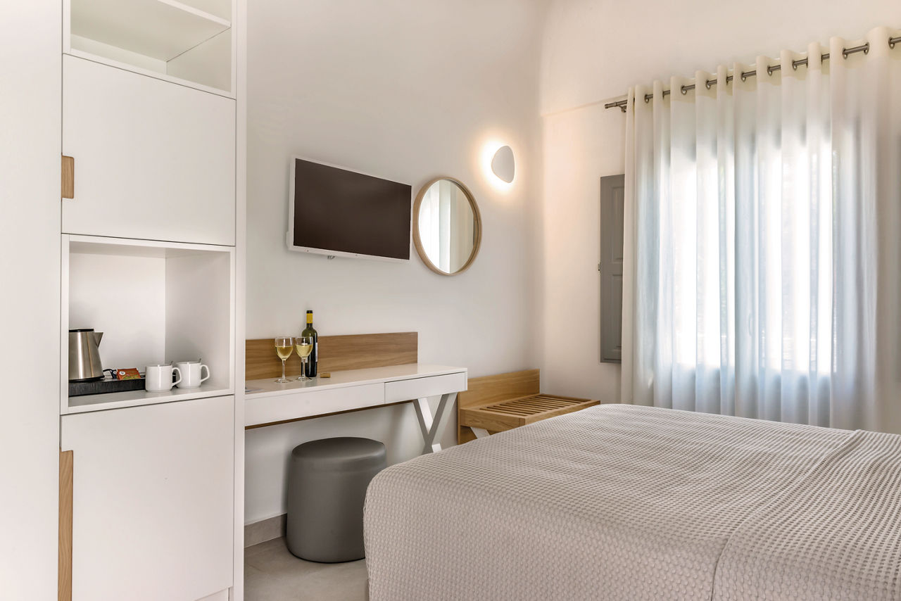 Step into a Grecian paradise at Strogili Hotel. Combining traditional Cycladic architecture with stylish interiors and modern comforts, it?s the perfect place to while away your days on a Santorini holiday. You?re also well placed to visit the shops, restaurants and bars in Kamari or relax on the ashy-black beach. As an Adults Only hotel, couples will love the peaceful atmosphere, from the tranquil pool area to the plush double rooms. Make the most of your stay at Strogili Hotel with a refreshing dip in the swimming pool or a drink at the on-site bar.Double or Twin rooms sleep up to 3 adults and have bathroom containing a shower, air conditioning, flat screen television, fridge, tea and coffee making facilities and balcony or terrace.