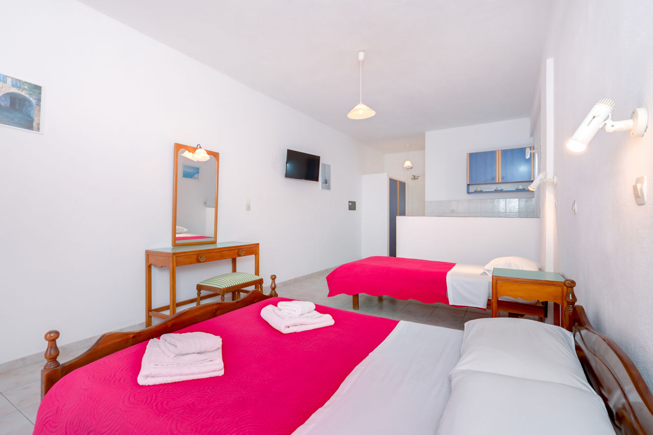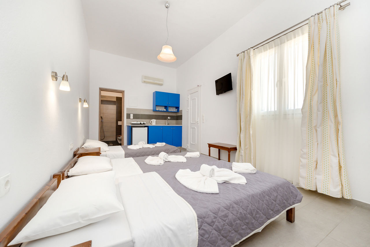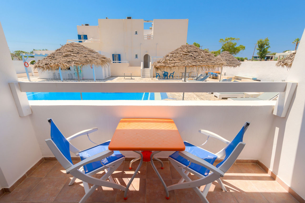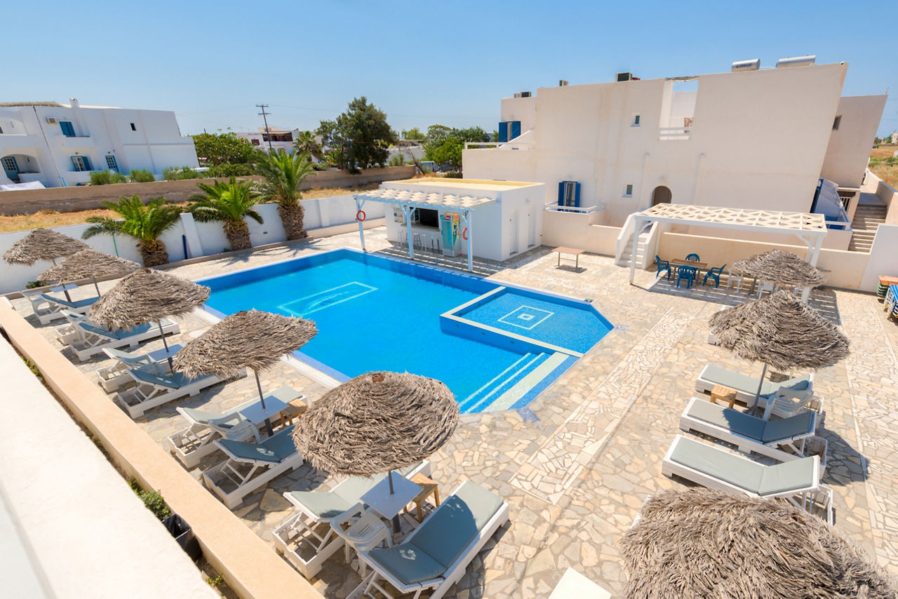 Perched on the outskirts of the charming village of Perissa, you?ll find Andreas Studios. Stays here are perfect for those who like experience the local area; wander around 10 minutes and you?ll find Perissa?s black sandy shores, lined with traditional tavernas and beach bars. Or, head back to the hotel to relax and unwind by the pool, which comes equipped with a bar to take care of the refreshments. The rooms are traditional in style, and well-equipped for doing your own thing for mealtimes. Plus with a welcoming atmosphere, and friendly service, Andreas Studios are hard to beat for a memorable stay on the picture-perfect island of Santorini!