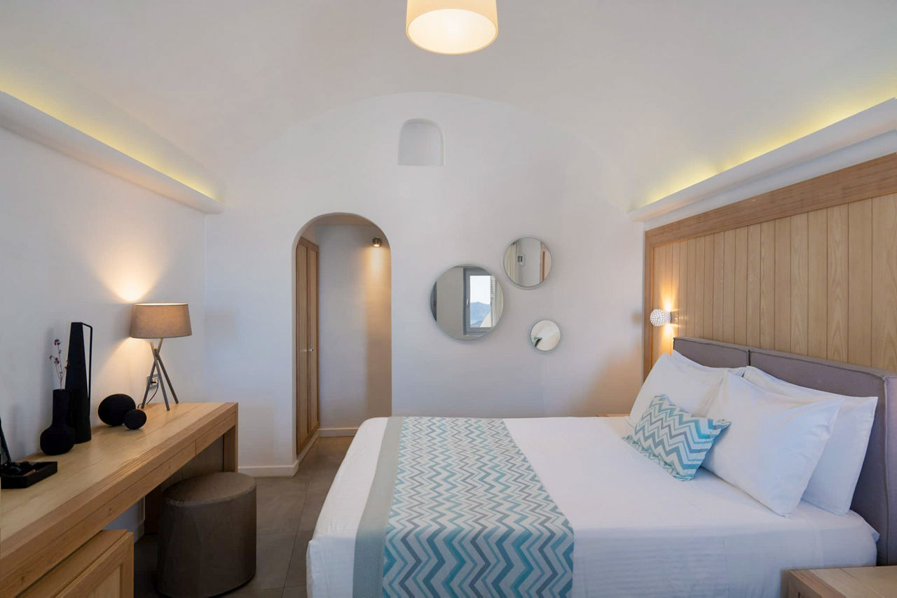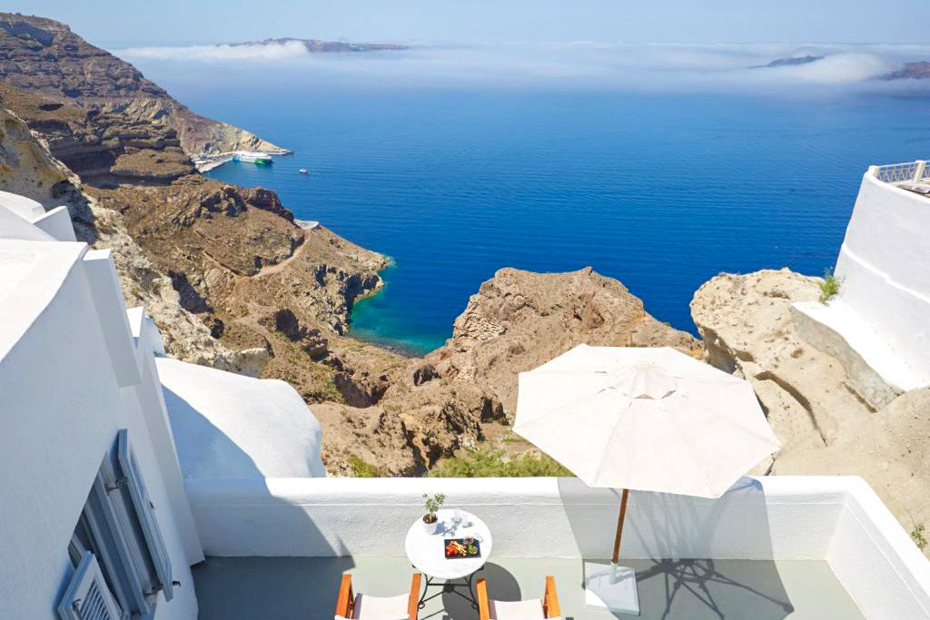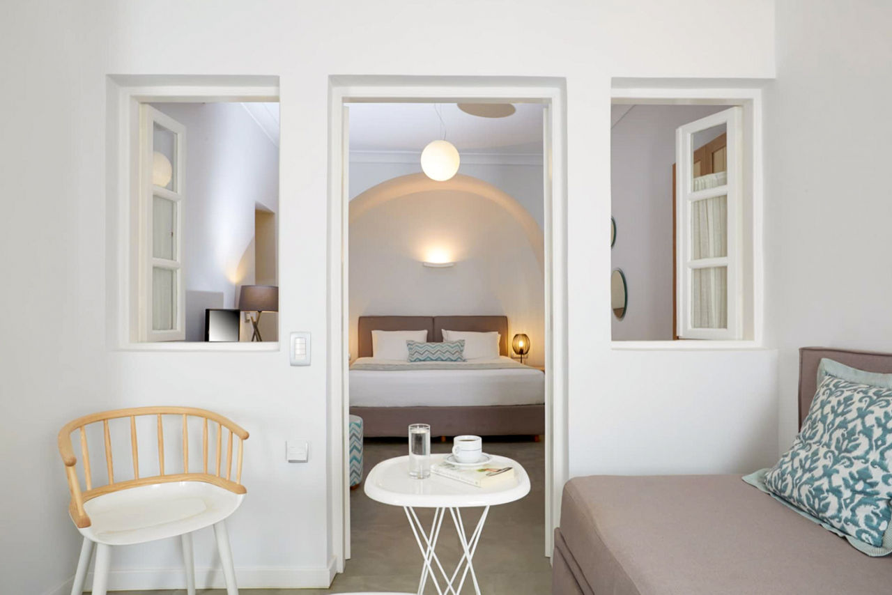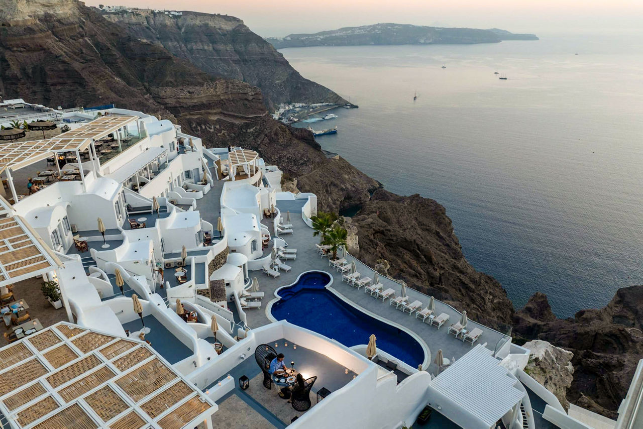 Couples will love the stunning, romantic sunset views from the Volcano View Hotel. It offers front row seats to the world-famous Caldera as well as great service and a number of outdoor pools and terraces. Traditional Cycladic architecture and charm flows throughout, with dainty white sugar-cube buildings and cave-style rooms. Inside, accommodation is comfortable and luxurious, with minimalist style décor and little touches of luxury.