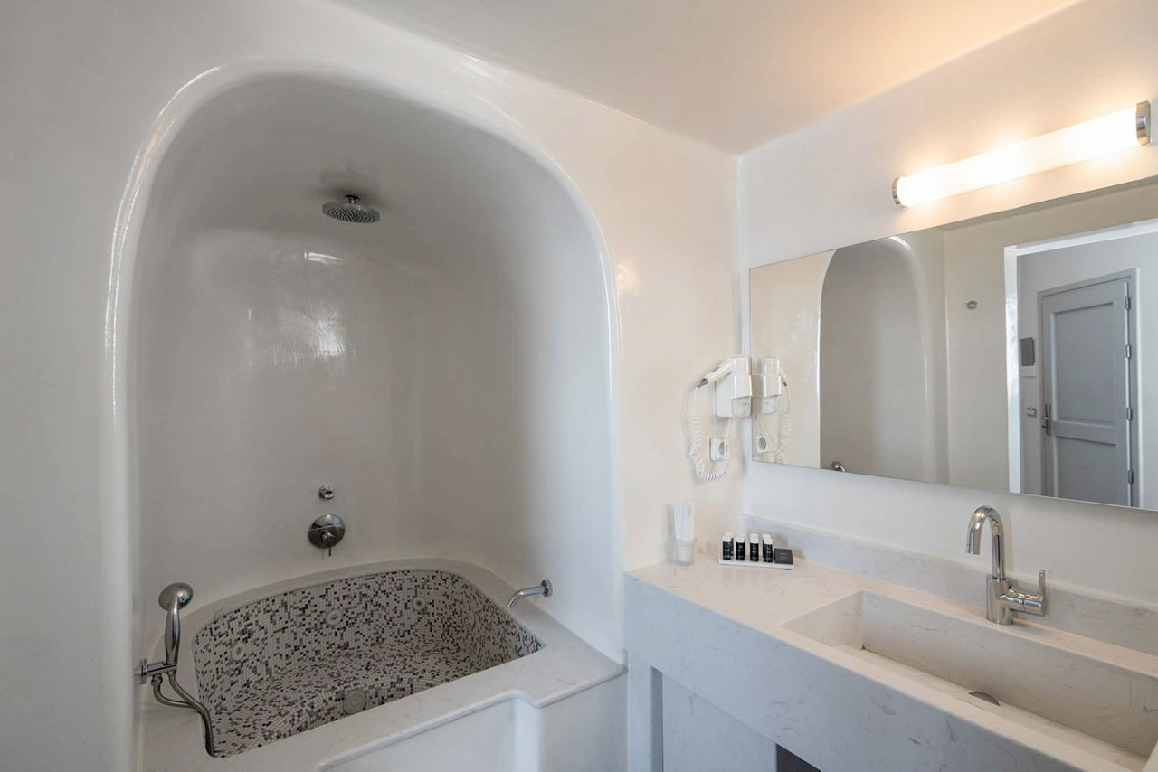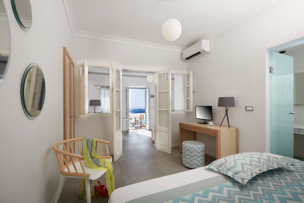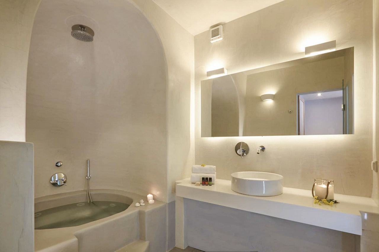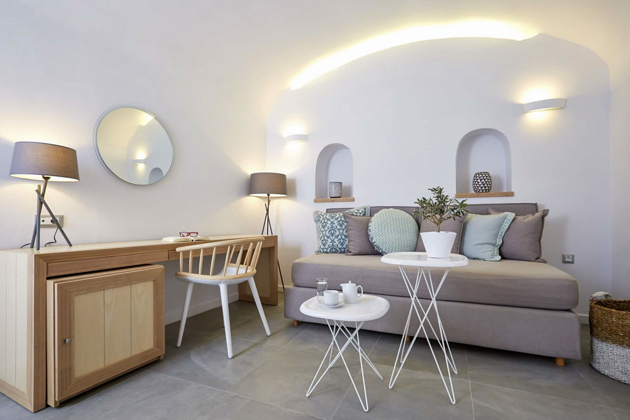 Couples will love the stunning, romantic sunset views from the Volcano View Hotel. It offers front row seats to the world-famous Caldera as well as great service and a number of outdoor pools and terraces. Traditional Cycladic architecture and charm flows throughout, with dainty white sugar-cube buildings and cave-style rooms. Inside, accommodation is comfortable and luxurious, with minimalist style décor and little touches of luxury.