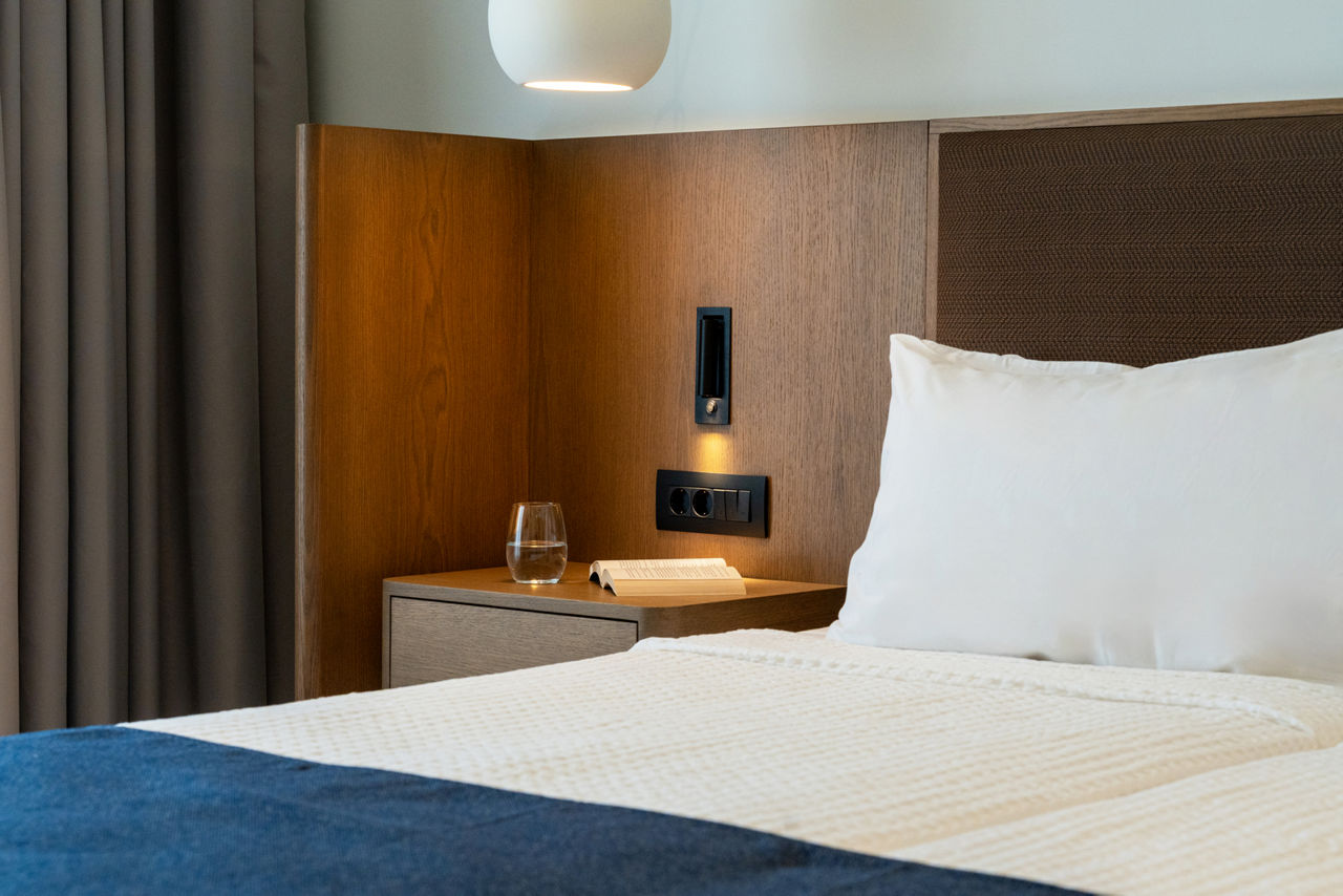Double rooms sleep up to 2 adults and 1 child and have bathroom, air conditioning, hairdryer, flat screen television, fridge and balcony. Suites sleeping up to 2 adults and 2 children are also available.