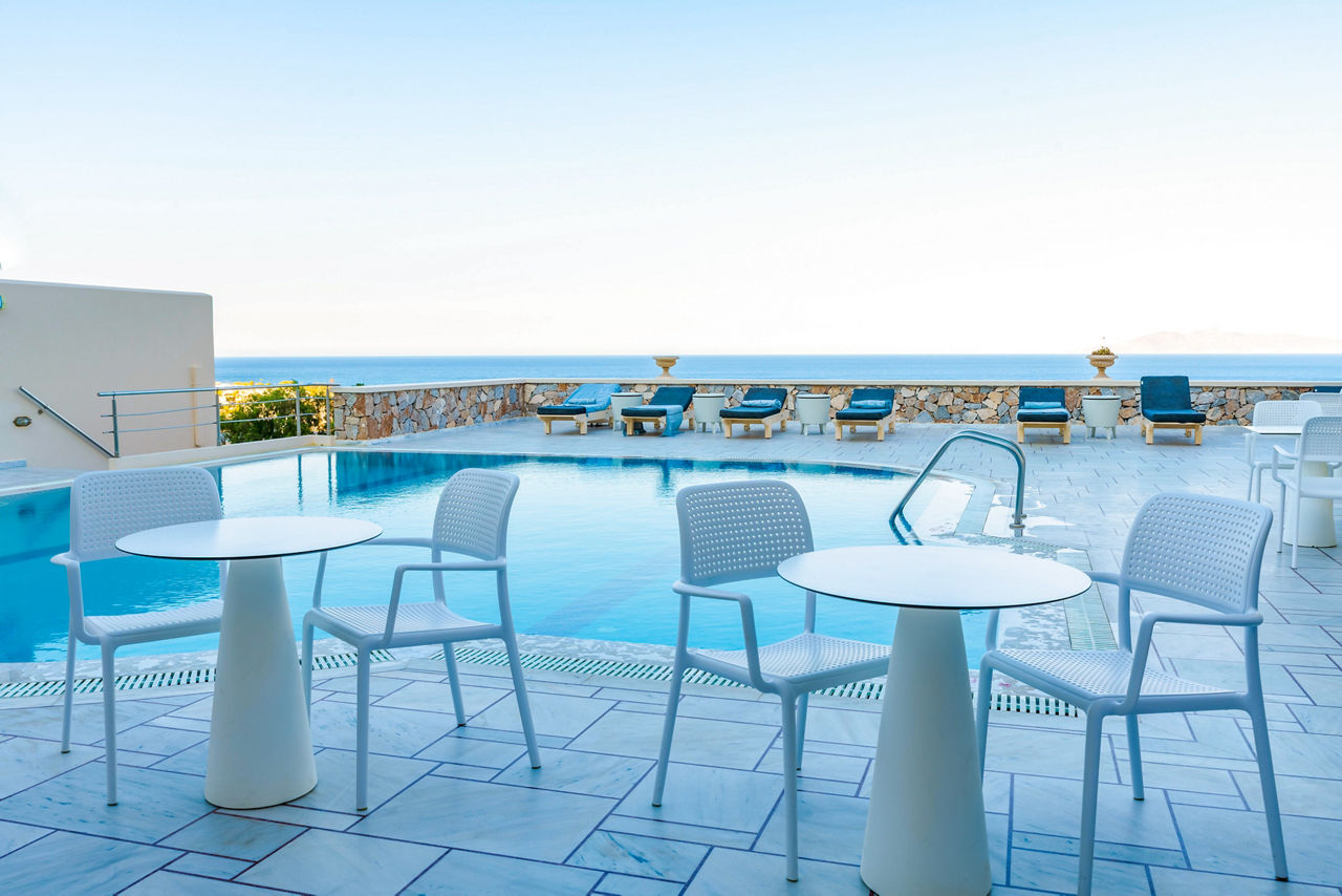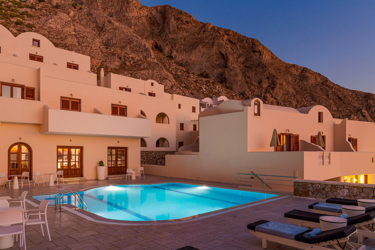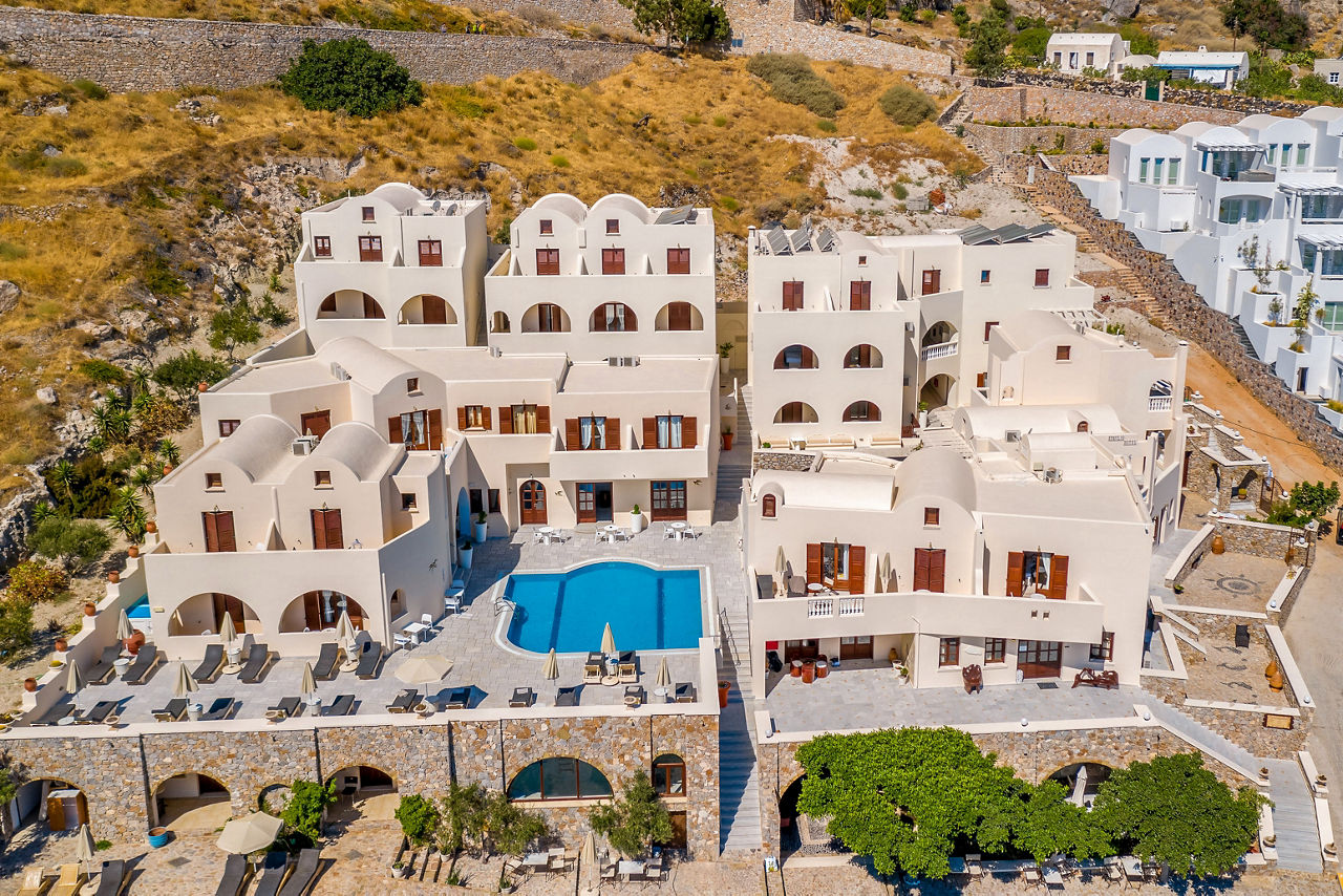 Epavlis Hotel & Spa captures the essence of Santorini with its traditional Cycladic architecture and picture-perfect views. Situated in a hillside spot; amazing views can be expected, whether that?s from the mountains which separate Kamari and Perissa, or poolside where sea views can be savoured. Make the most of your day, starting with a tasty breakfast before heading out to explore the island, or perhaps take a visit to the hotel?s very own spa, all before finally unwinding in your room at the end of the day ? for an extra special stay, why not upgrade to a deluxe room with an outdoor whirlpool and you?ll be able to take a dip on your own balcony!