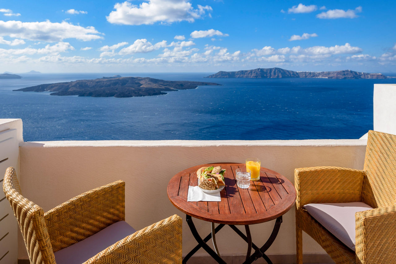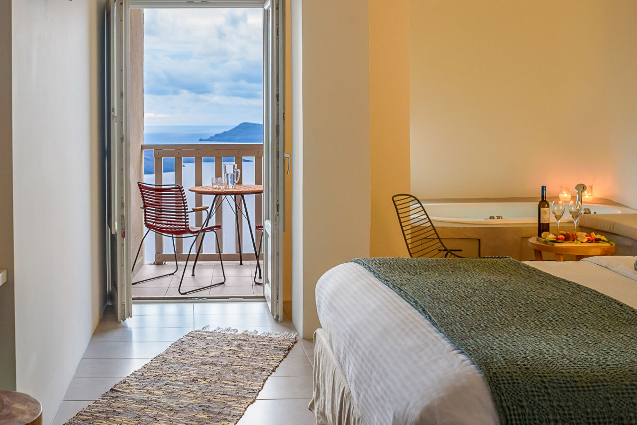 The whitewashed Panorama Boutique Hotel offers impressive sea views. The location is great for exploring all Santorini has to offer, then why not relax at the outdoor pool area or with a massage in the onsite spa. The comfortable rooms have a unique design and are well equipped with everything you need for a comfortable stay.