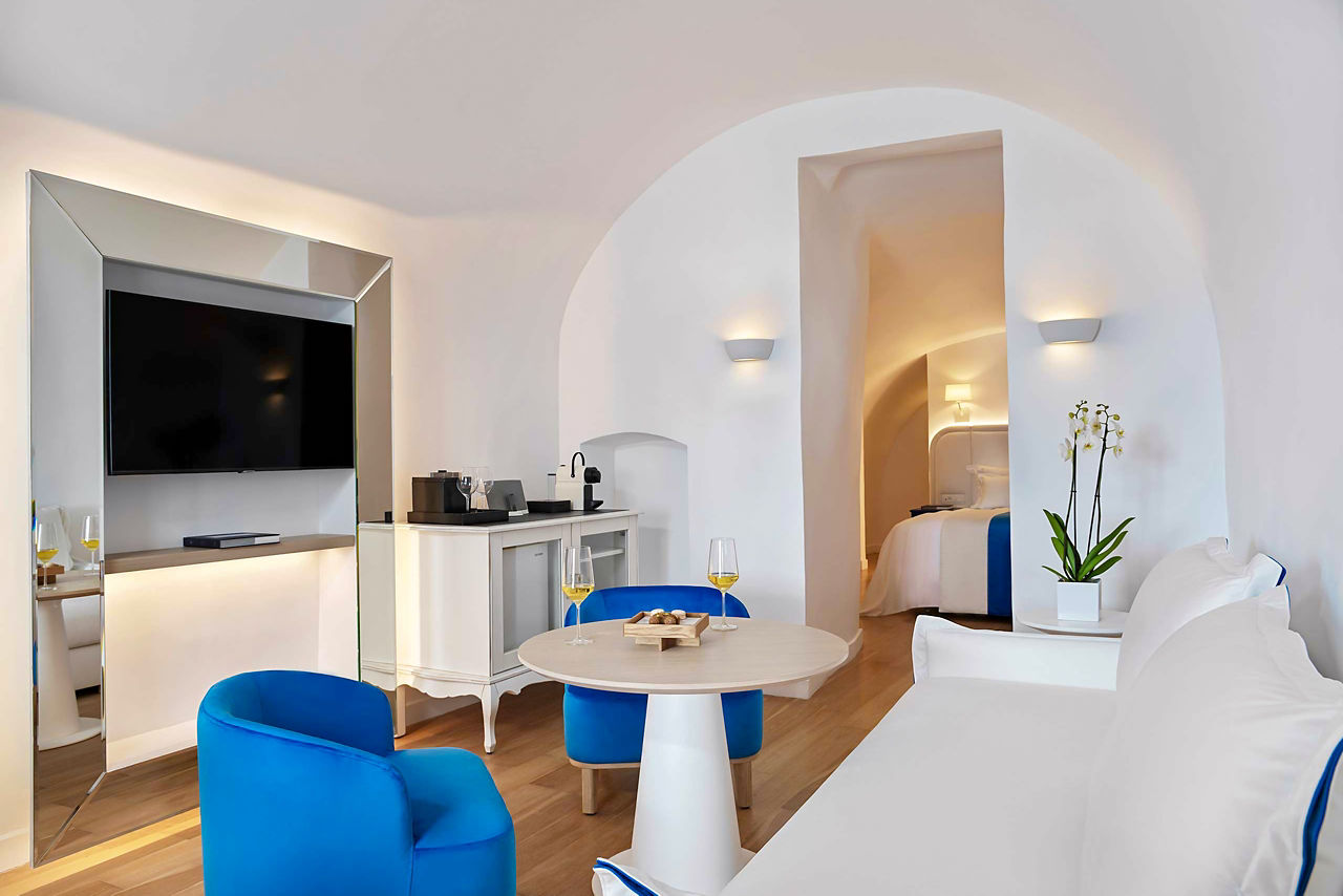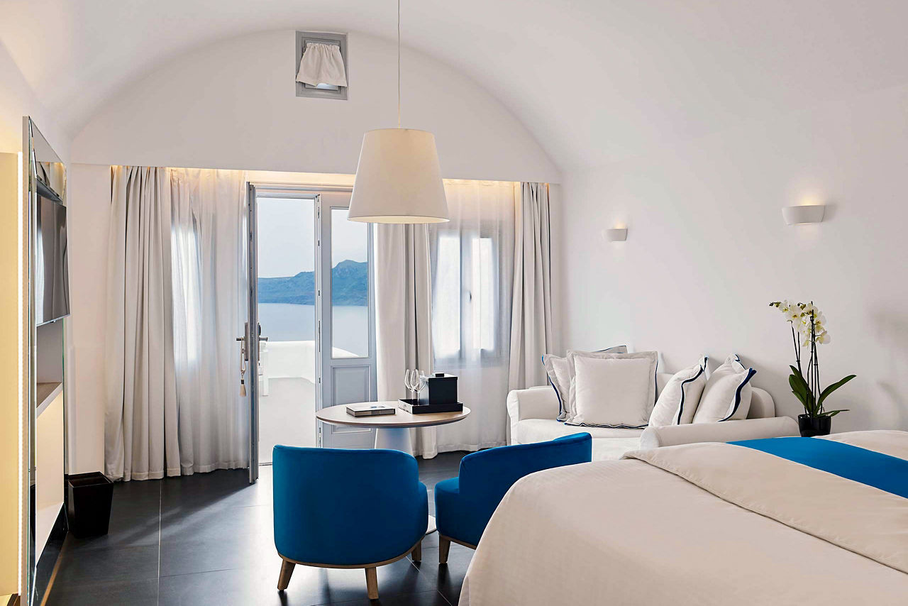 You?ll be bowled over by this traditional Cycladic hotel. Its breathtaking, bucket-list caldera views are just the beginning ? Katikies Santorini is renowned for its impeccable service, intimate atmosphere and beautiful architecture too. Boutique shops and charming restaurants are within walking distance, though stay right where you are if you?re after three infinity pools. The two à la carte restaurants boast sumptuous, Greek Anatolian cuisine with a side of epic vistas. After an afternoon of Mediterranean-inspired treatments in the spa, allow yourself to be tempted by sushi and cuvées in the hotel?s Seltz Champagne Bar & Restaurant by Fleur de Miraval.Double rooms sleep up to 2 adults and have bathroom containing a shower, air conditioning, hairdryer, bathrobe and slippers, flat screen television, coffee making facilities and terrace. Junior suites, Senior suites and Superior suites all sleeping up to 3 adults are also available.