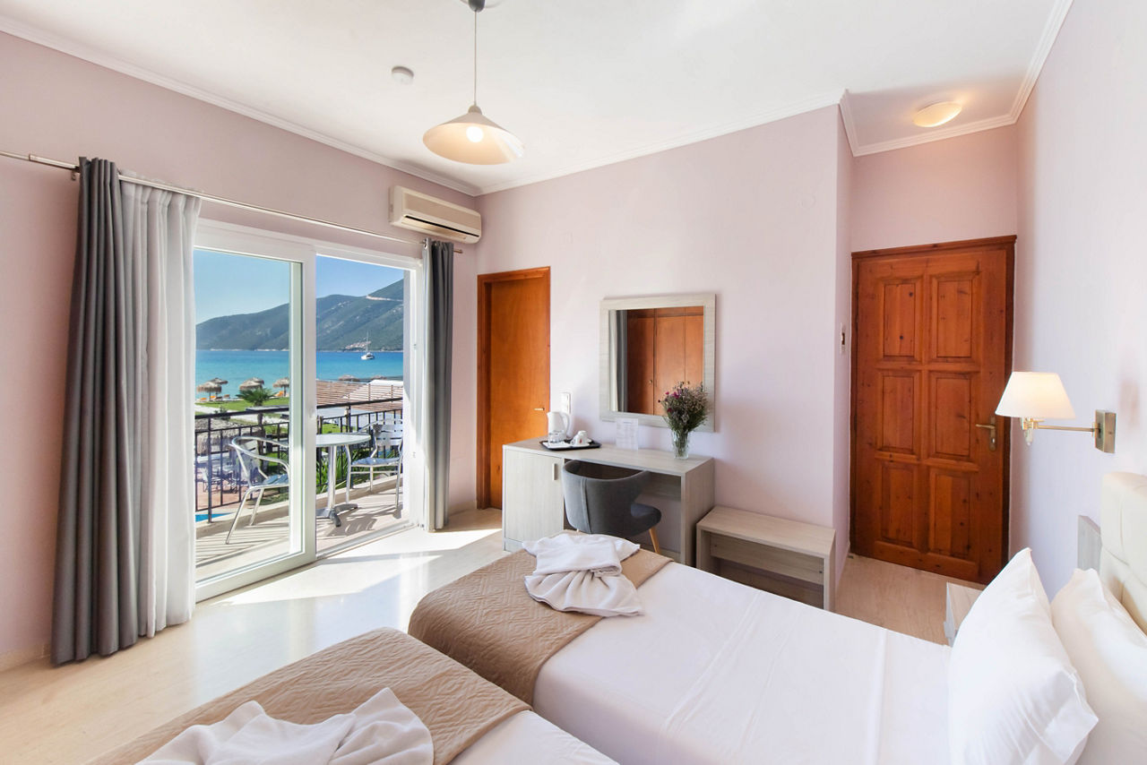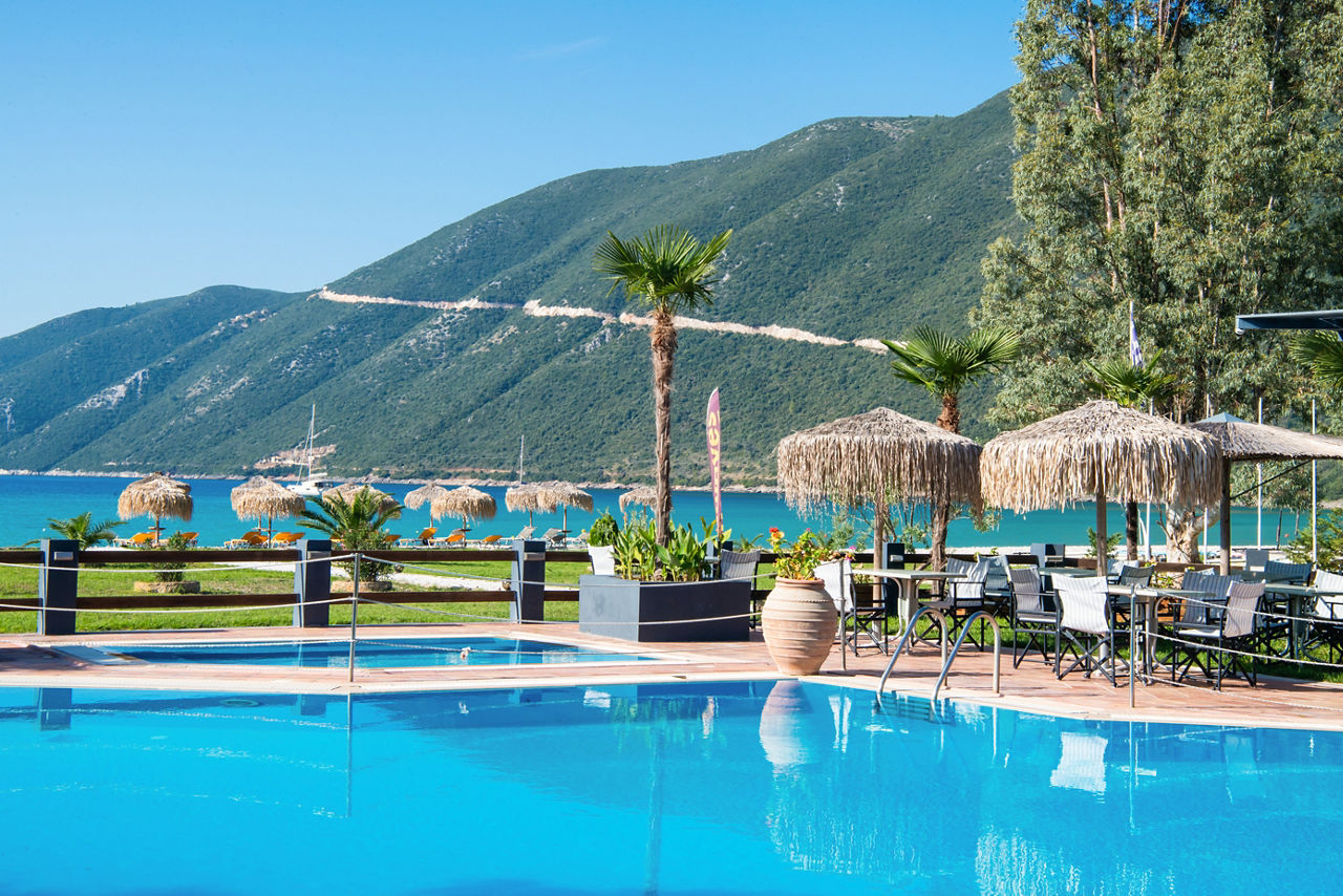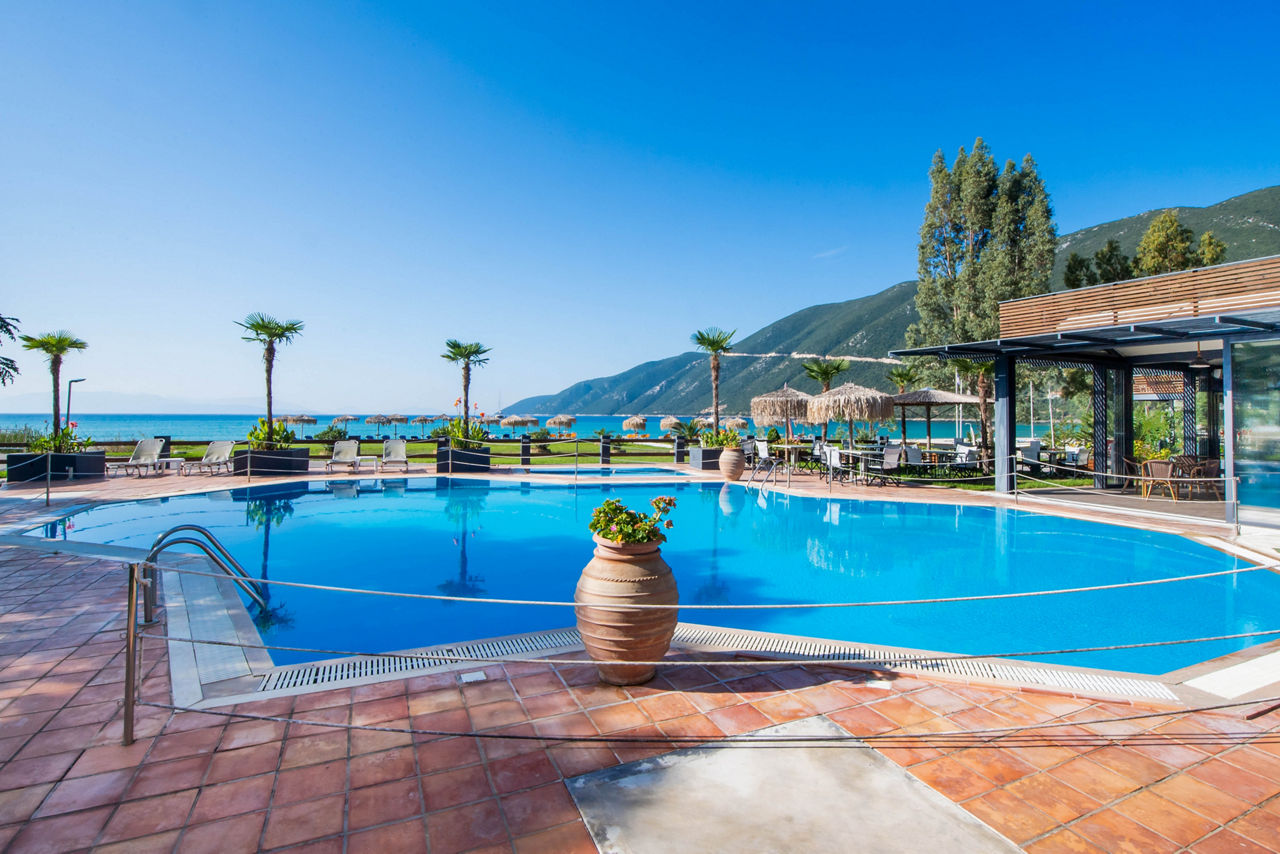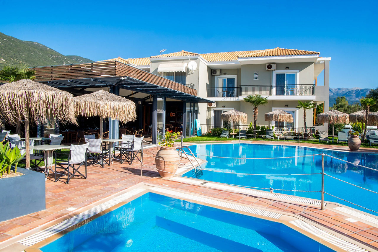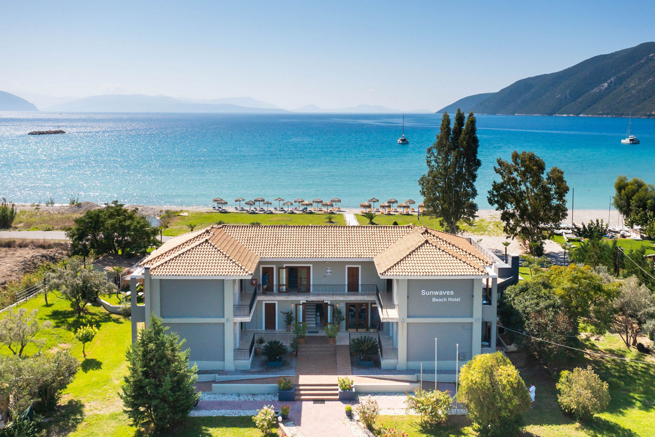 The charming Sunwaves Beach Hotel is in an ideal choice for rest and relaxation. The location is the star of the show here, overlooking the crystal blue sea and the beach, stunning natural scenery comes in abundance here. Days can be spent soaking up the sun by the pool, followed by grabbing a bite to eat in the restaurant, all whilst taking in the lovely views! Located around a ten minute walk from the resort centre of Vasiliki, which offers traditional restaurants and tavernas, Sunwaves Beach Hotel is a great spot to enjoy Lefkas from.