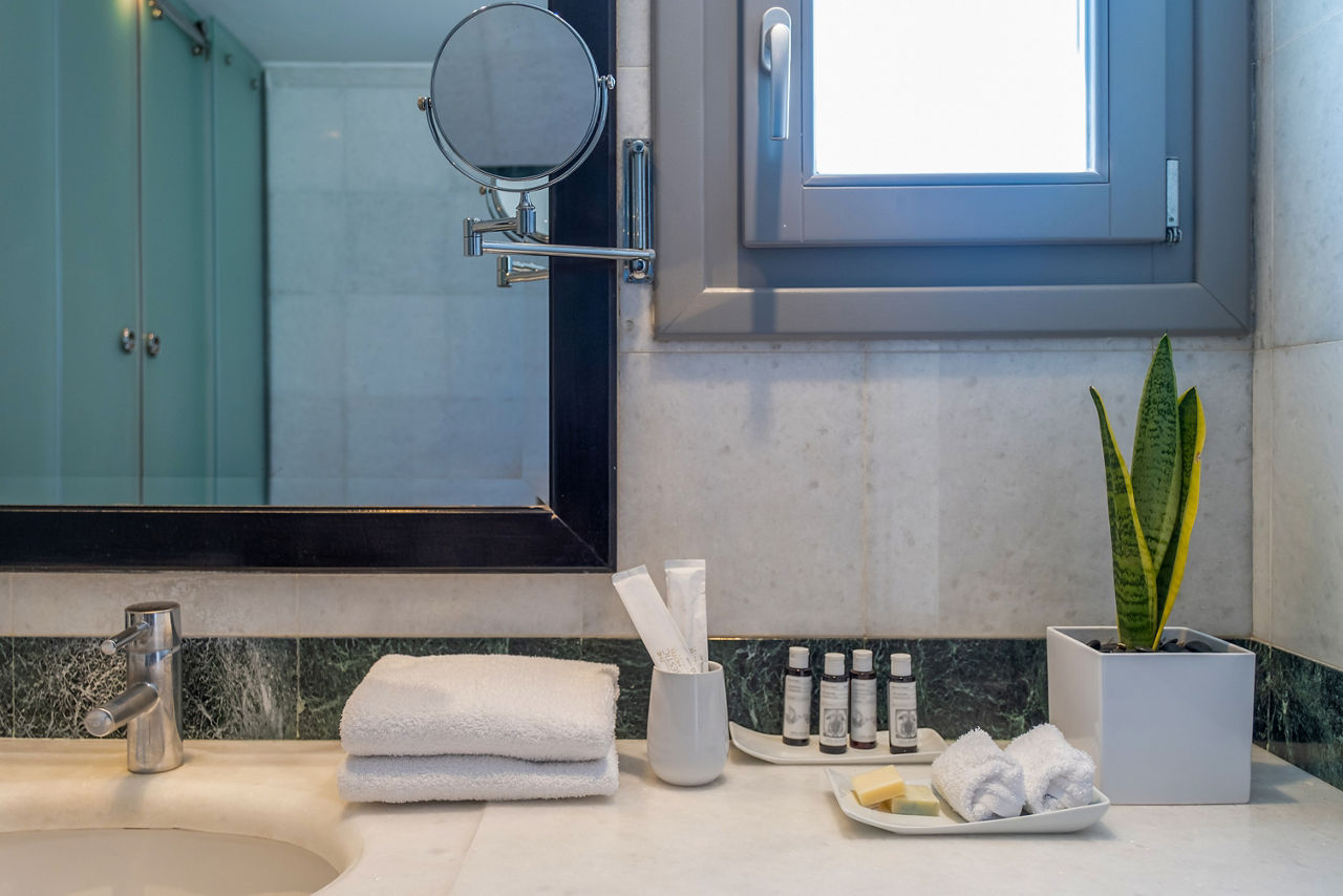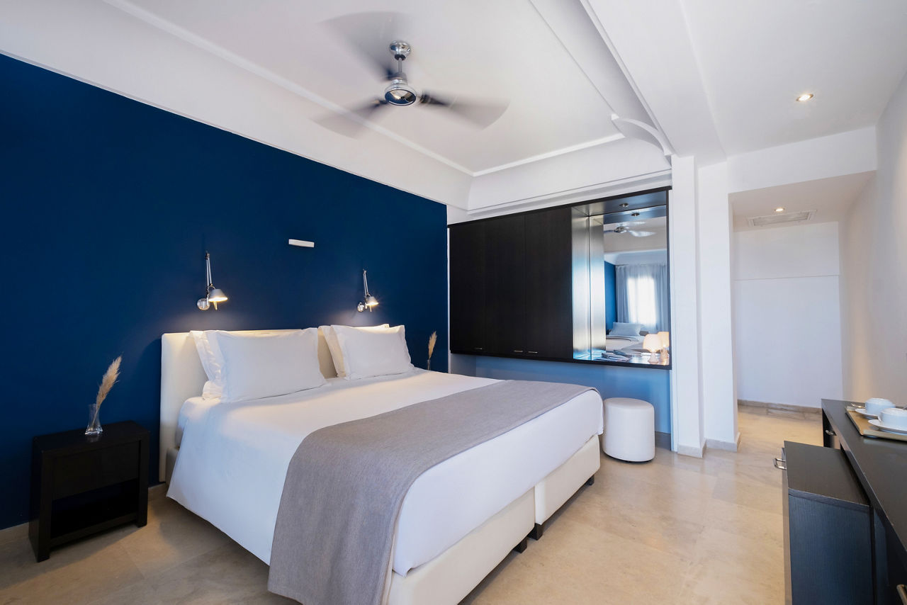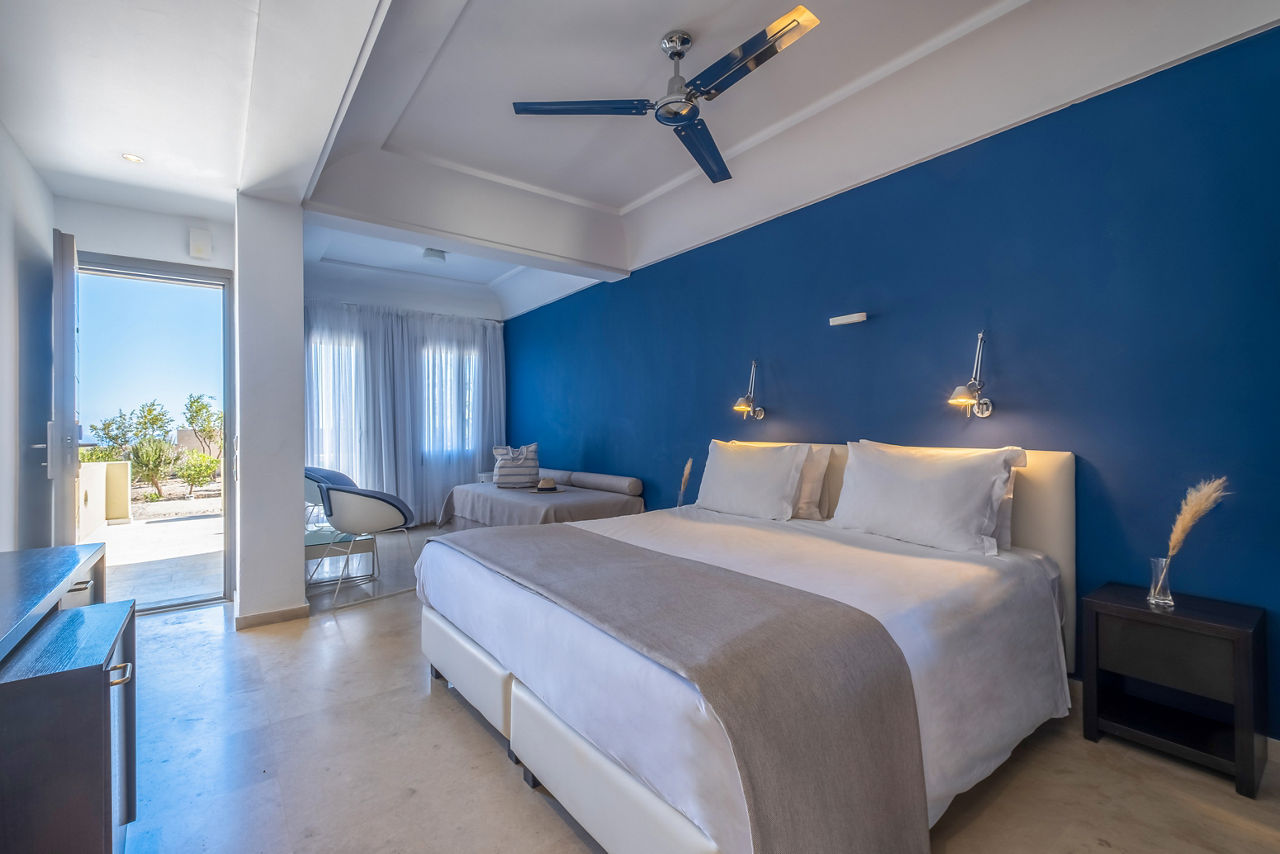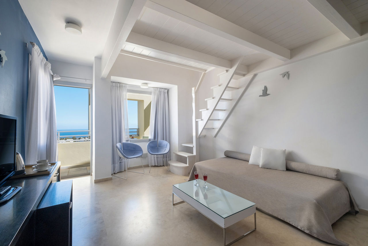 Sitting pretty on the hilltop spot overlooking Santorini's iconic Caldera, you will find the Majestic Hotel. Prepare to be stunned by the far-reaching views over the glistening Aegean Sea and the wow-factor really starts to crank up as blues fade to orange when the sun begins to set. You definitely can't miss sitting back and sipping on a cocktail from the hotel bar as night begins to fall. By day, make the most of the pretty pool area, or if you fancy a spot of exploring, Fira, the island's capital with whitewashed houses and blue-domed churches, is just a short walk away. There's a variety of room types to choose from too, why not upgrade to a sea view or a volcano view for picture-perfect views from the moment you wake up? Or perhaps you want more space? Choose a Master suite or a Maisonette. Whatever room you stay in, you'll feel right at home!