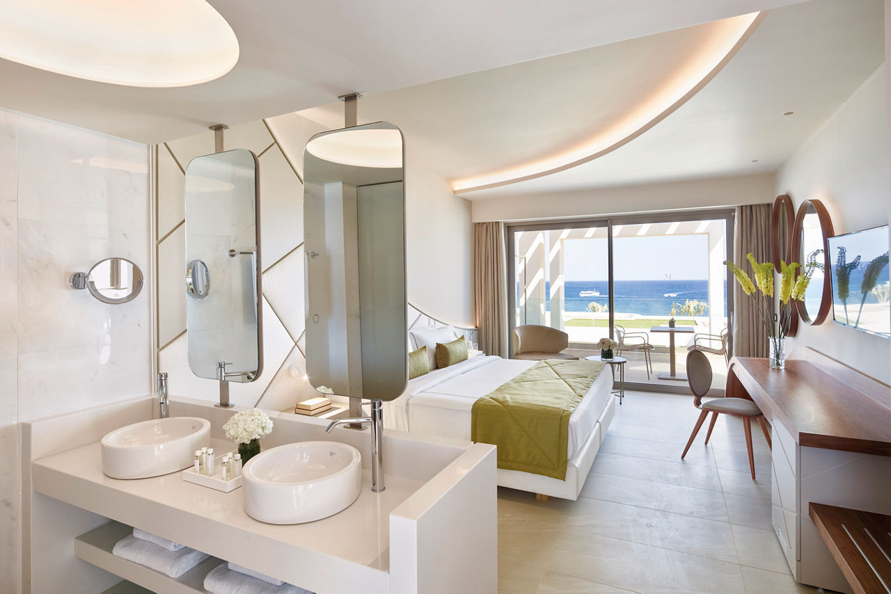 Southern Rhodes is about to become your haven of relaxation. Here at Mayia Exclusive ResortDeluxe rooms sleep up to 3 adults and have bathroom containing a bath or shower, air conditioning, hairdryer, bathrobe and slippers, flat screen television, coffee making facilities and balcony. Room upgrade options are also available.