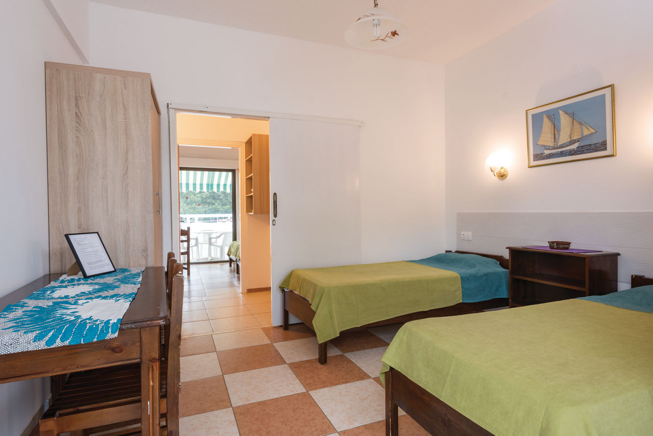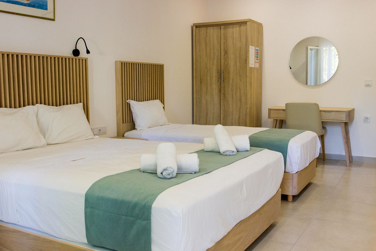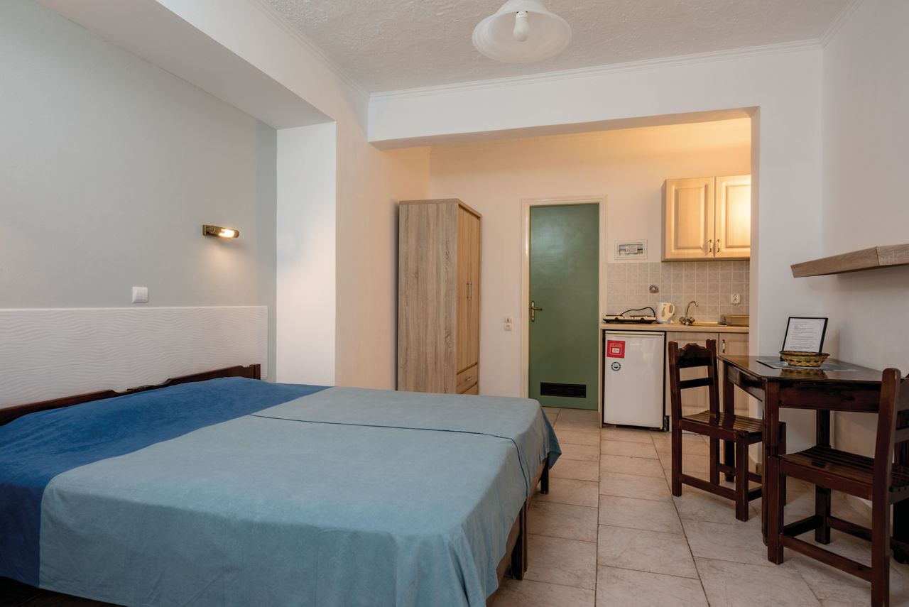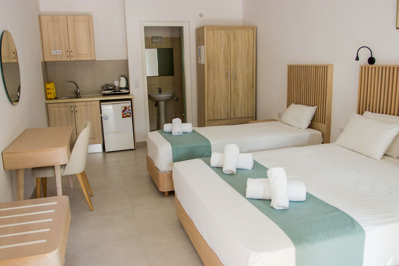 Katia StudiosStudios sleep up to 3 adults and have bathroom containing a shower, air conditioning*, hairdryer, fridge, double cooking rings, kettle, toaster, sandwich maker and balcony or terrace. Two Bedroom apartments sleeping up to 5 are also available.